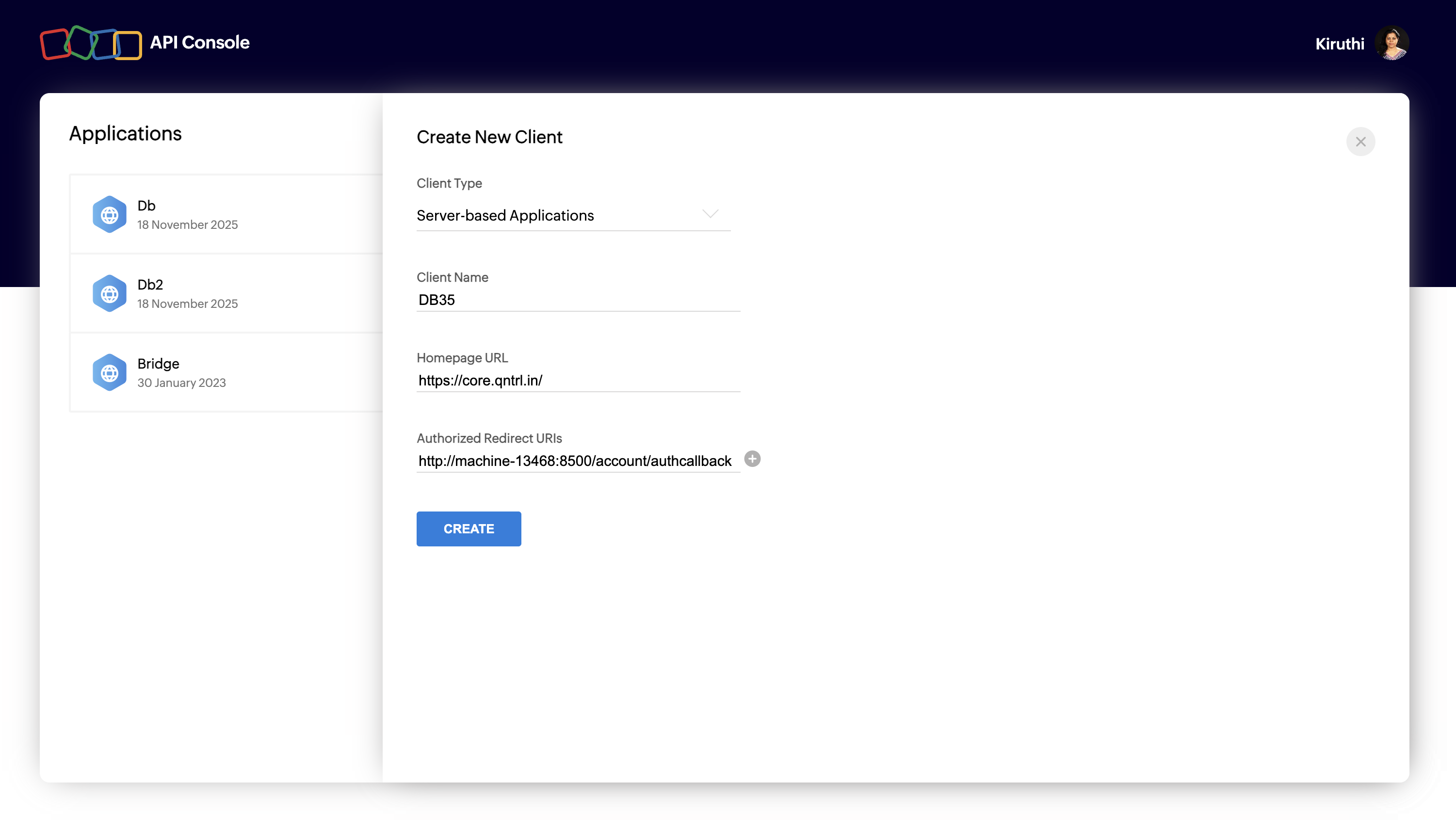 Registered your application in Qntrl.