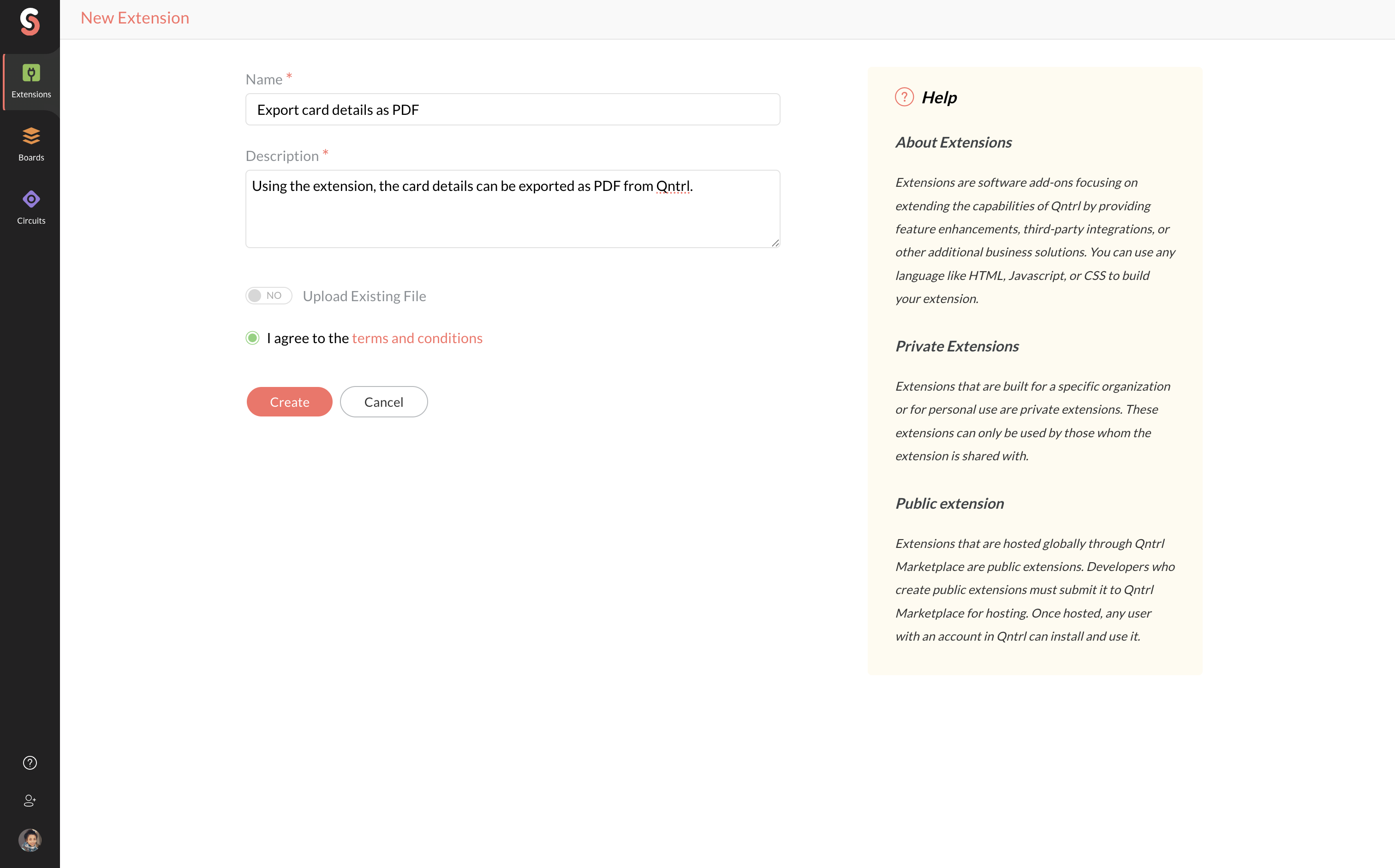 Extensions in Qntrl Marketplace can be either Public or Private.