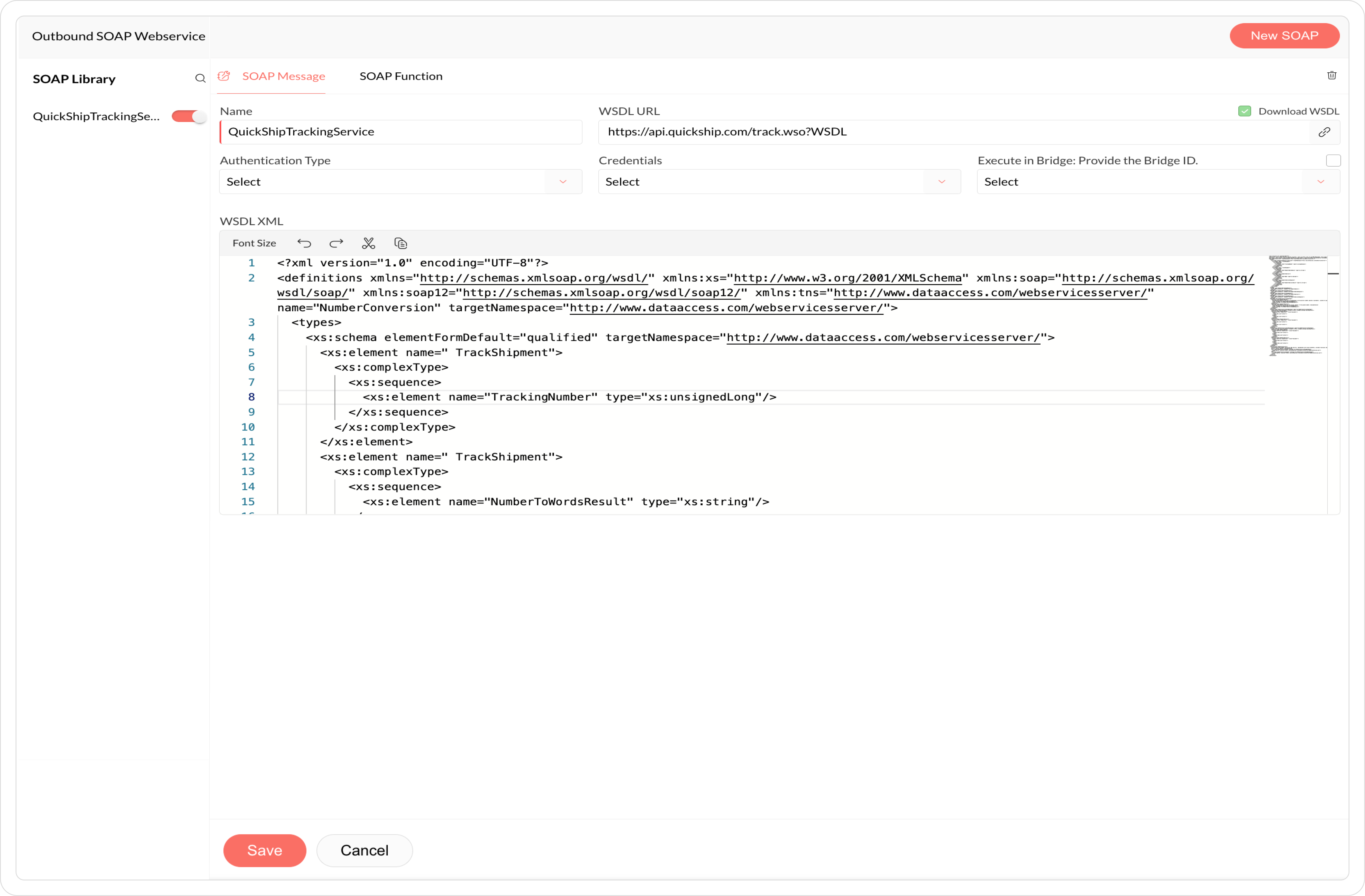 A logistics company, QuickShip, provides real-time shipment tracking services. An ecommerce platform, Cell Retail, integrates with QuickShip’s SOAP-based tracking API using Qntrl’s Outbound SOAP Web Services.