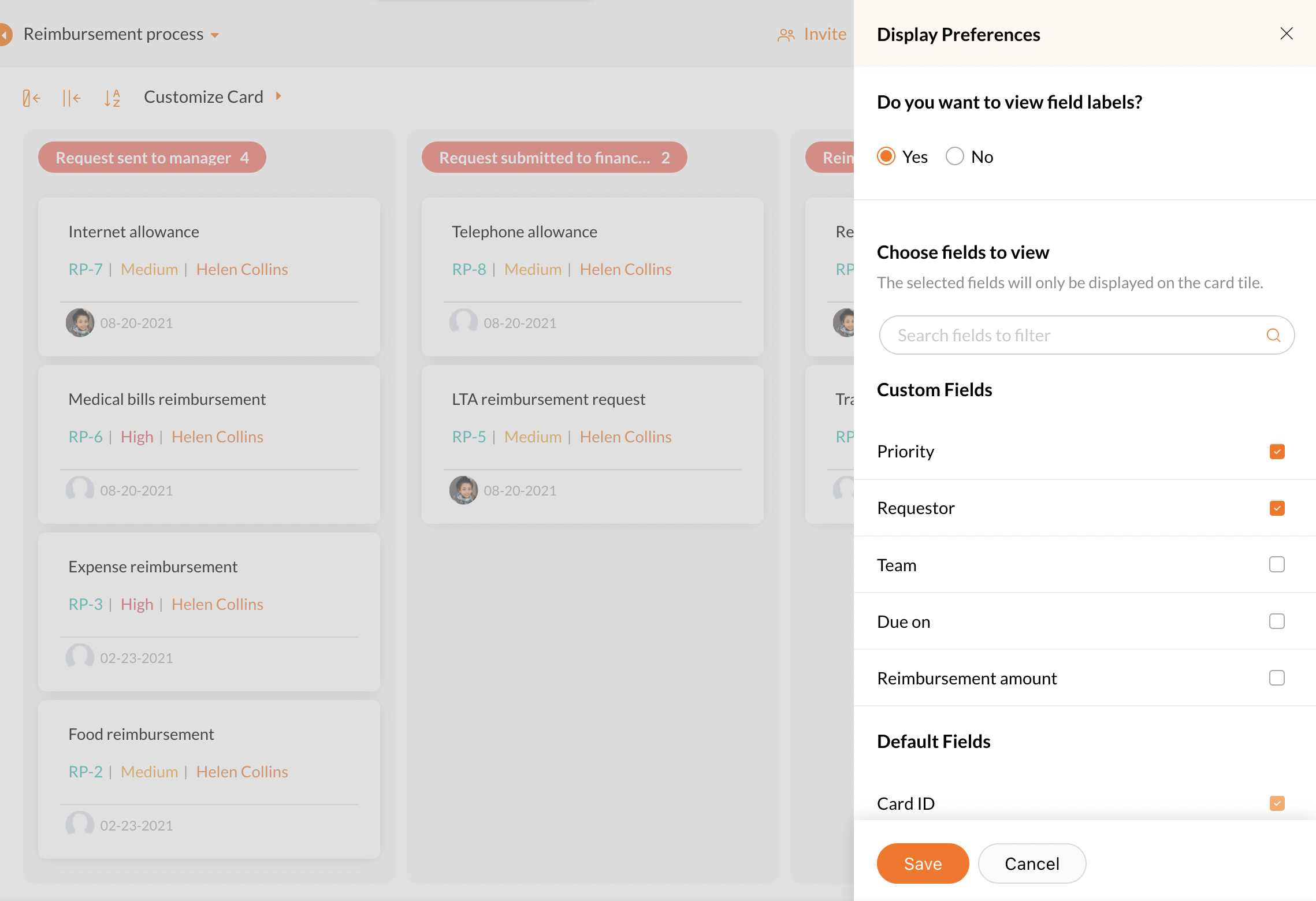 - Click Yes to view the field labels in the Kanban board or choose No.
