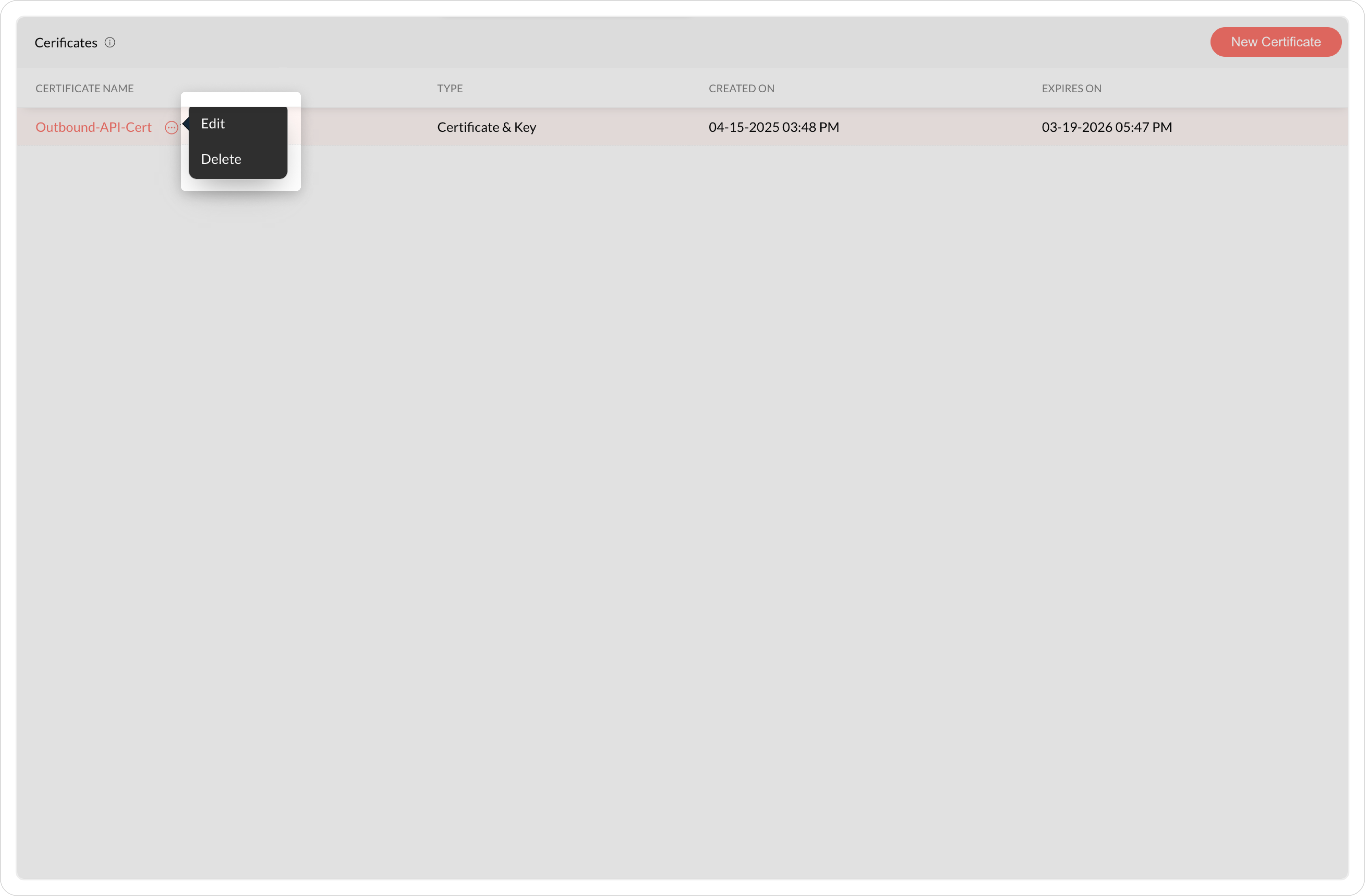 Deleting a certificate is irreversible. Make sure it’s no longer in use before proceeding.
