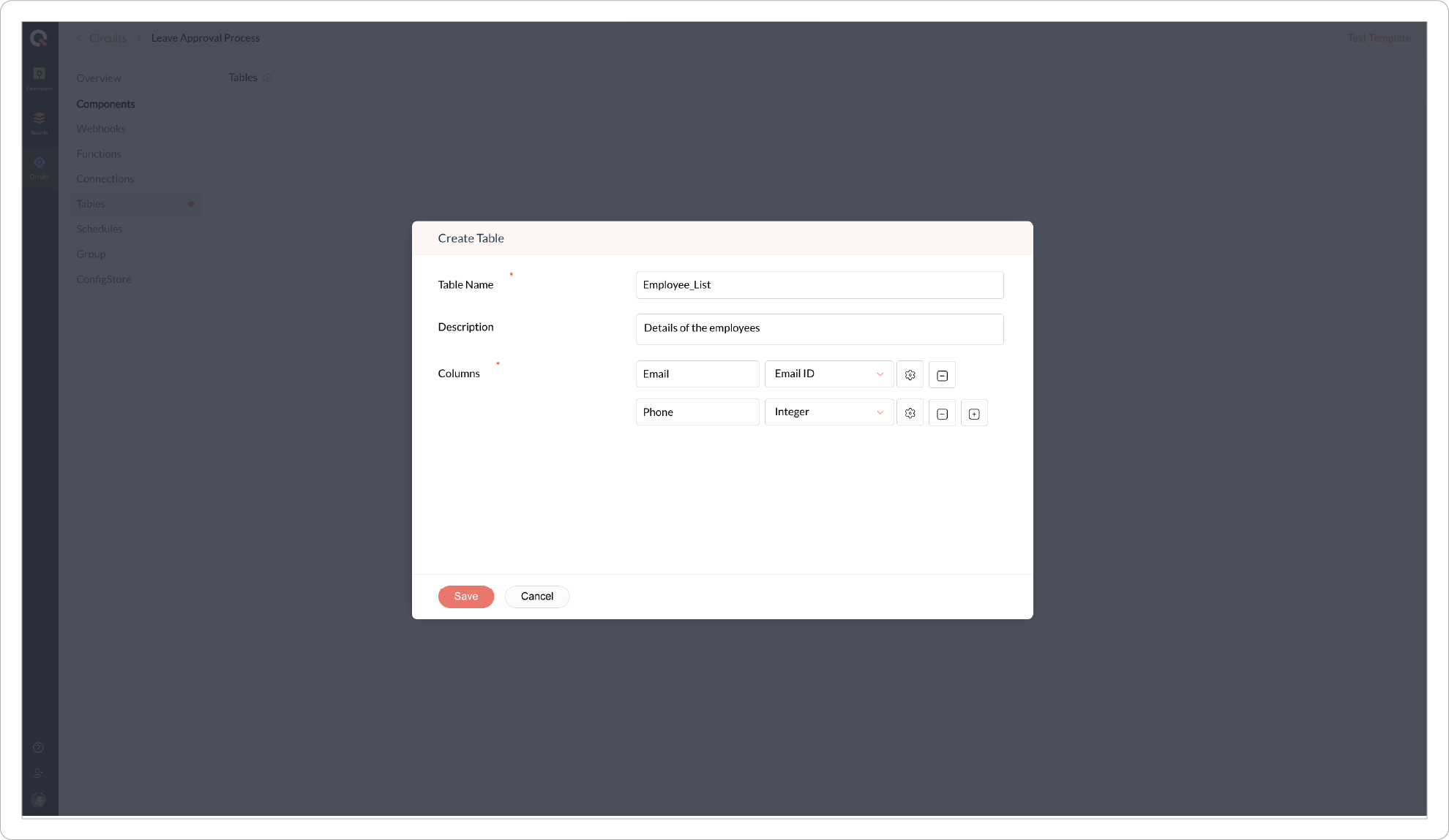 Click Save to create the table. Once created, you can manually enter data or import it into the table.