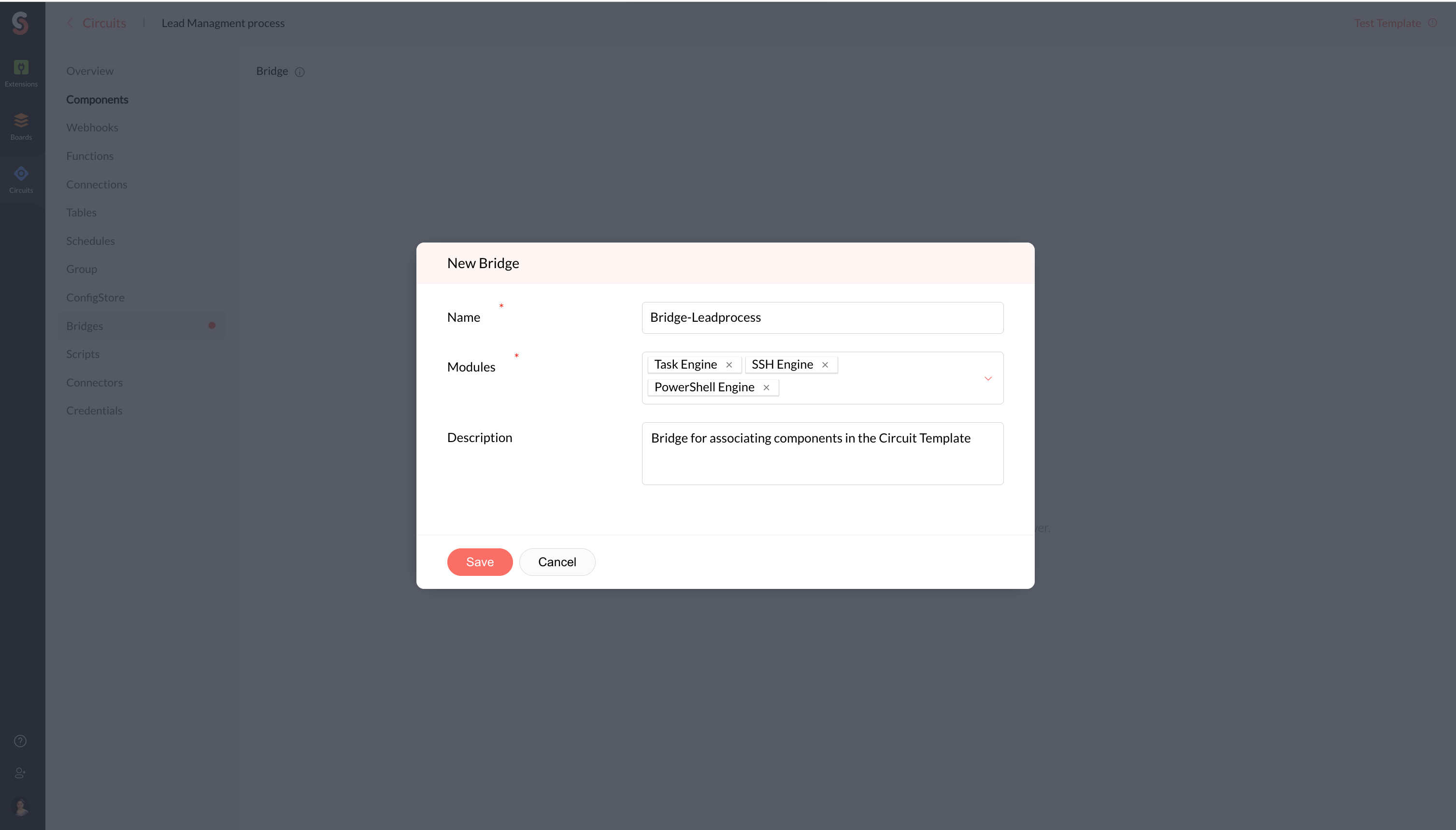 If the Bridge is not associating during connector or credential creation, ensure the relevant modules configured in the component are selected.