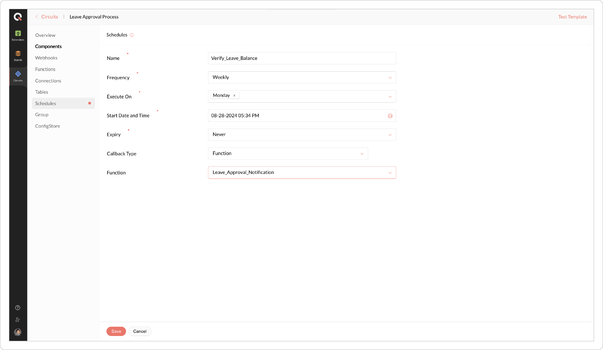 Callback Type: Choose whether the schedule should trigger a Function or a Circuit.
