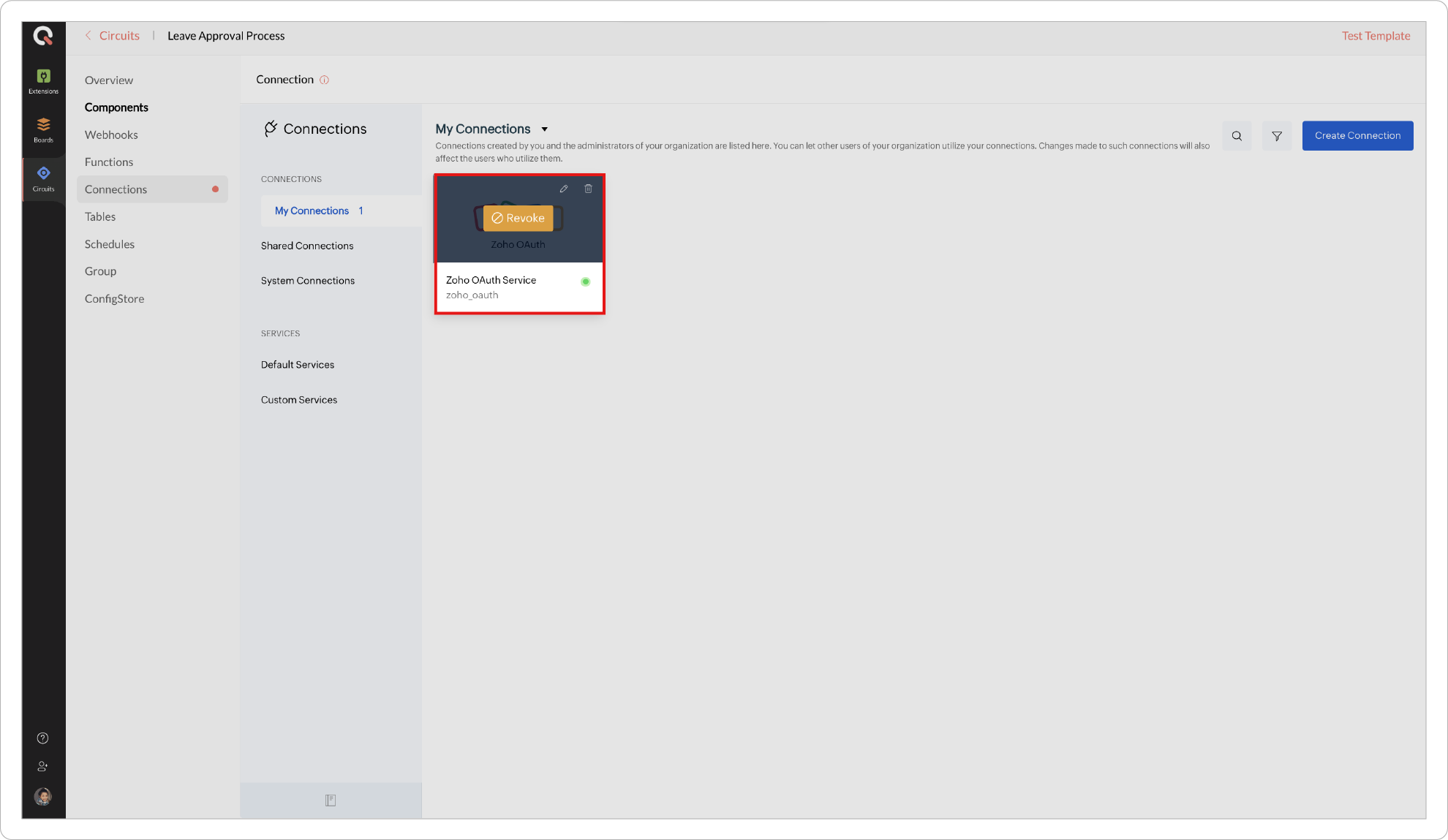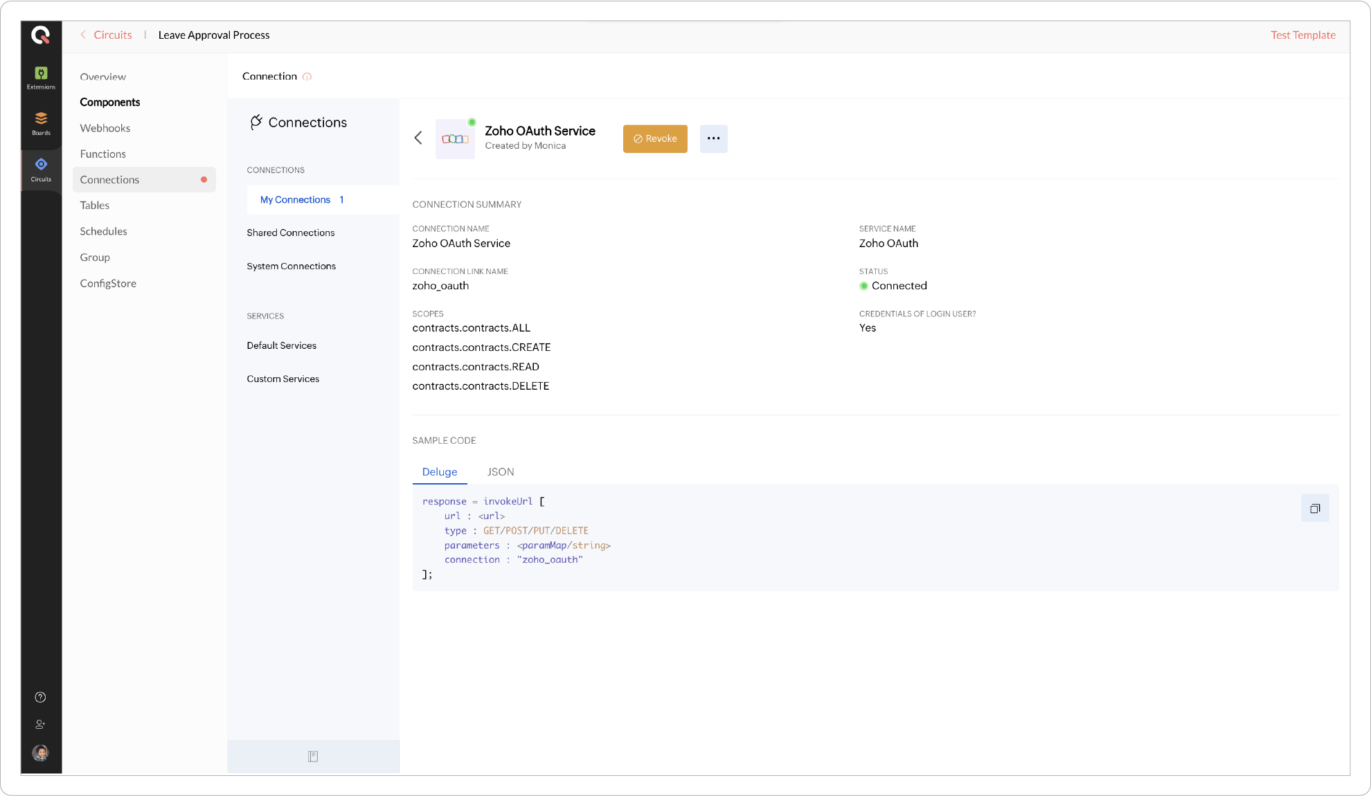 Revoking a connection removes authorization but doesn't delete the connection record the service will still be listed on the Connections page. You can re-establish the connection at any time.