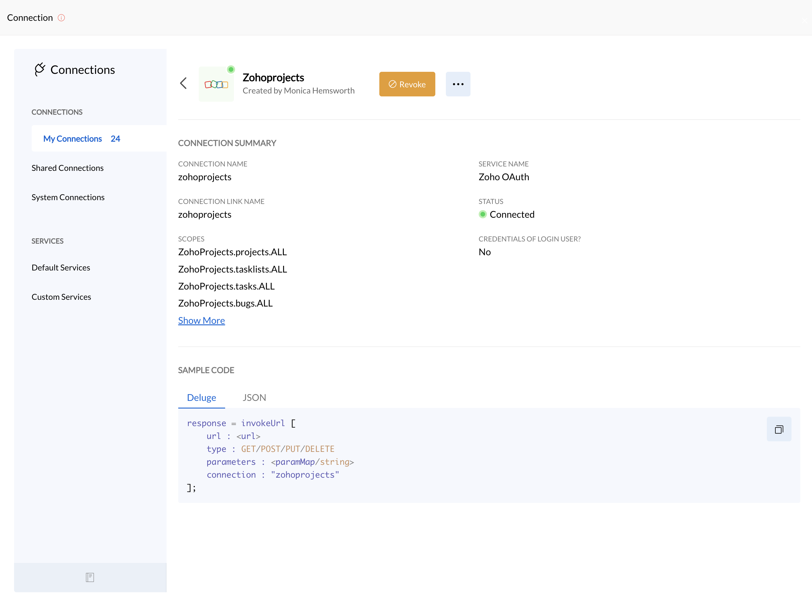 If users no longer require an integration, they can revoke the connection.