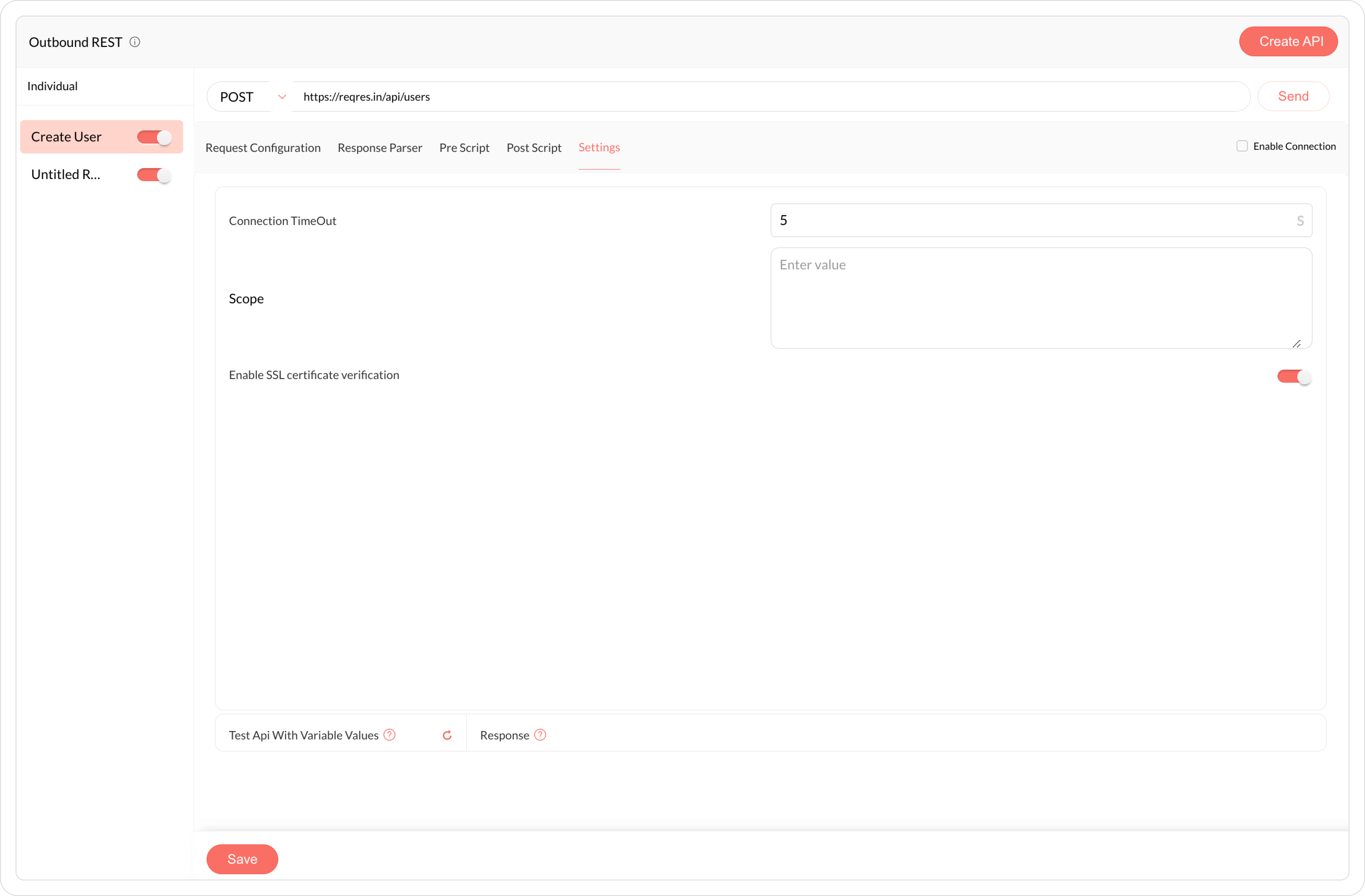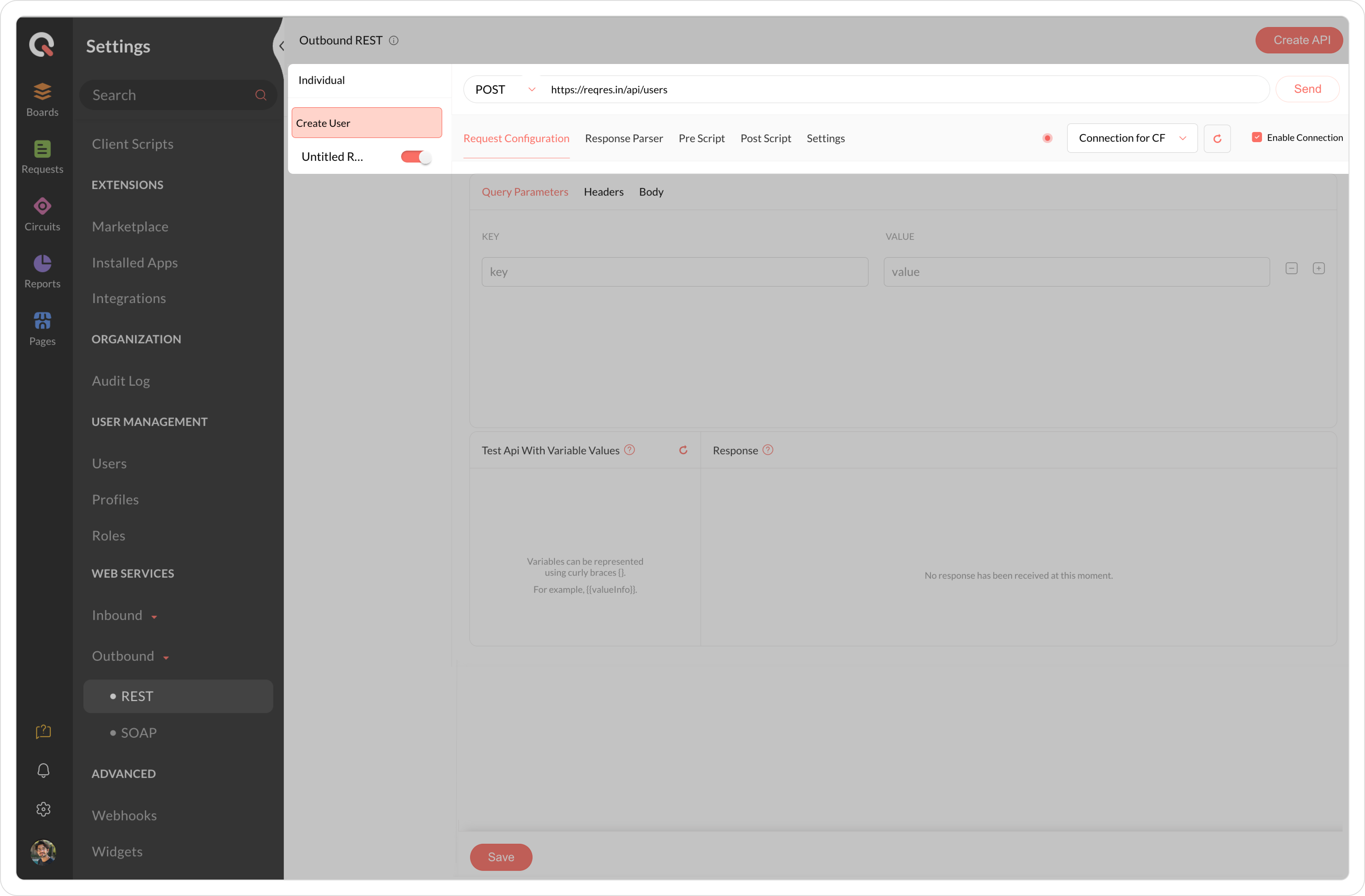 Navigate to (settings) >> WEB SERVICES >> Outbound >> Click REST.