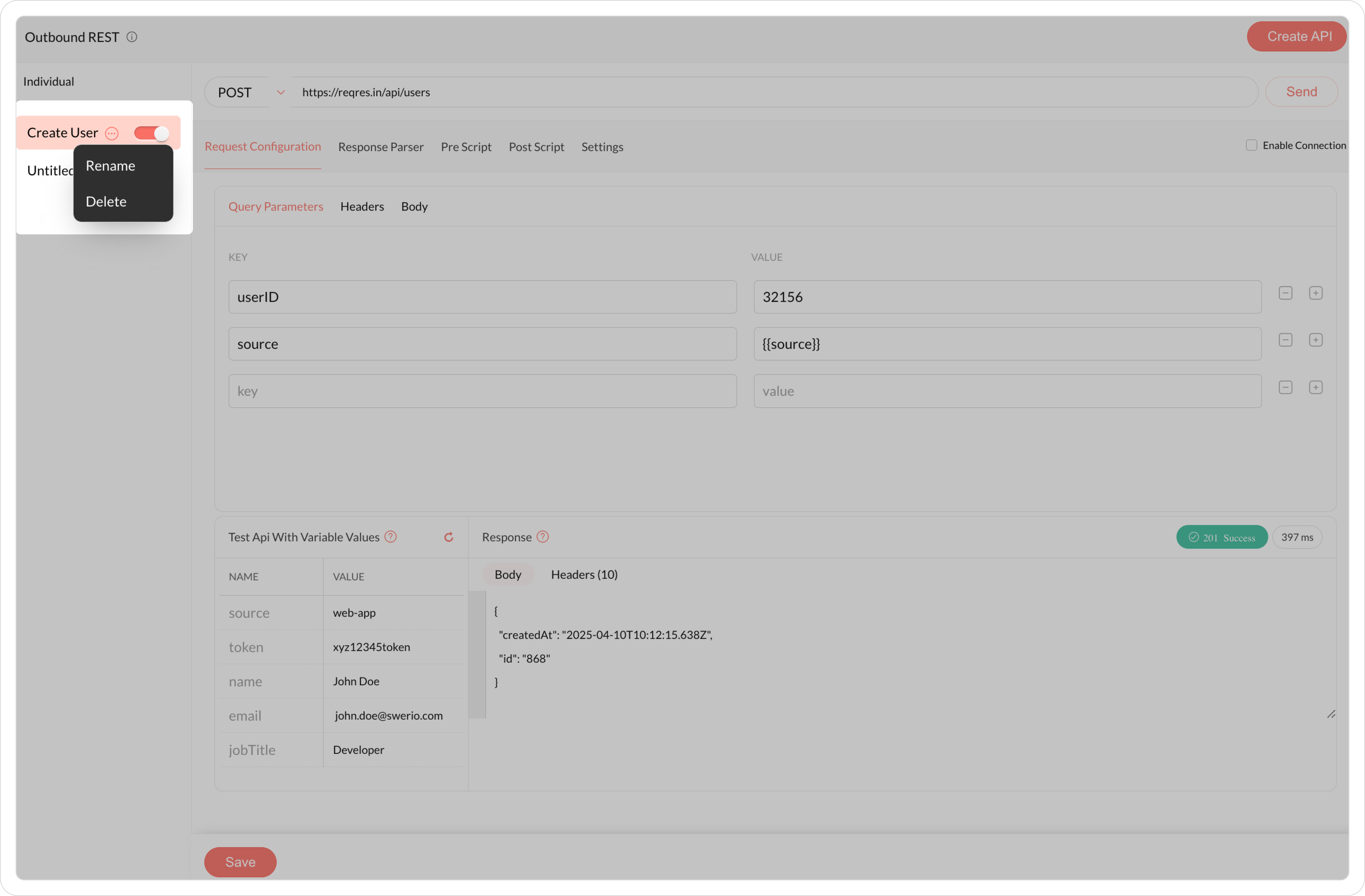 Rename or Delete: Click the more actions (...) icon next to the API and choose Rename or Delete as needed.