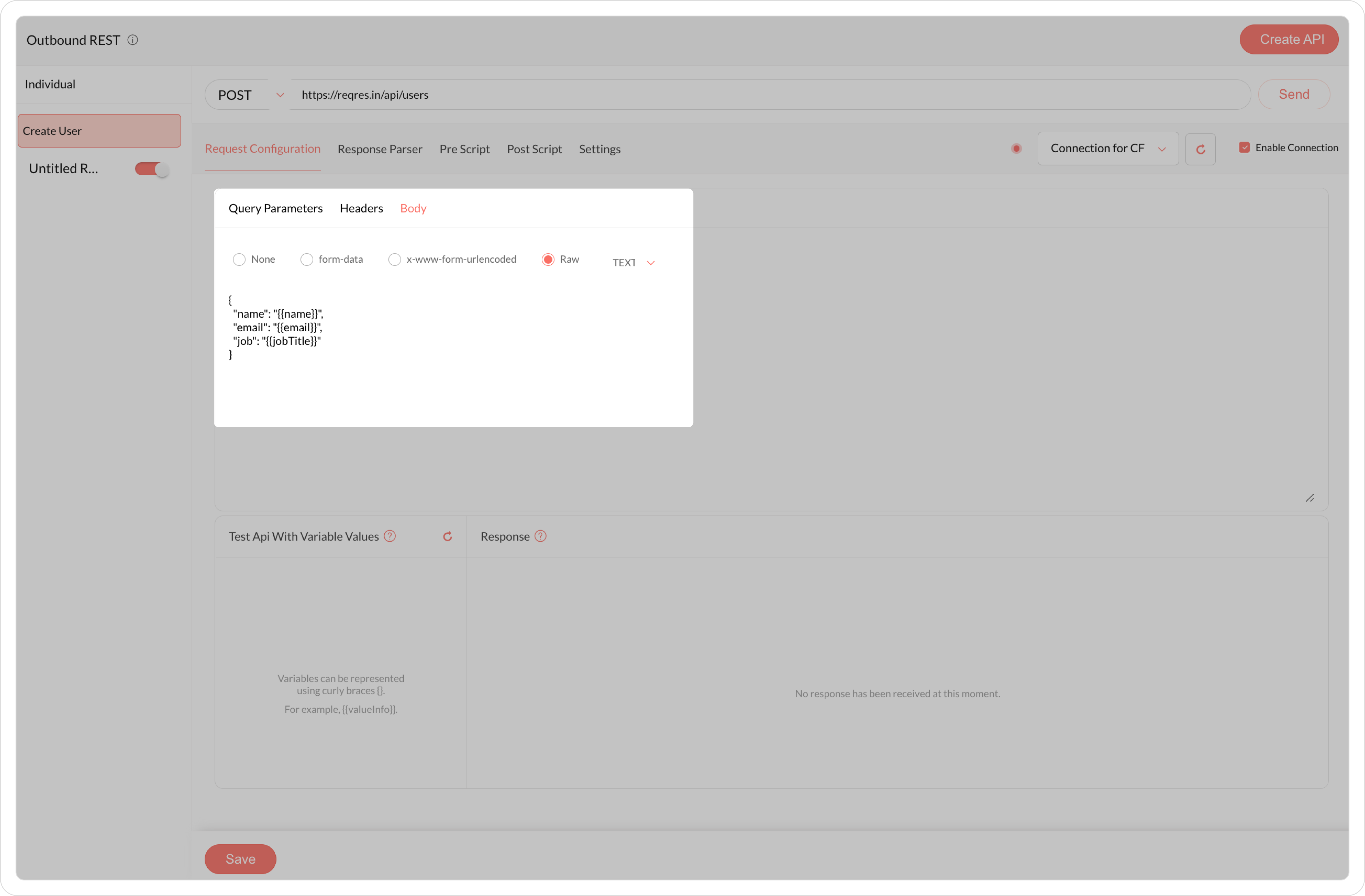 Raw: Supports Text, JSON, or XML for complex payloads.