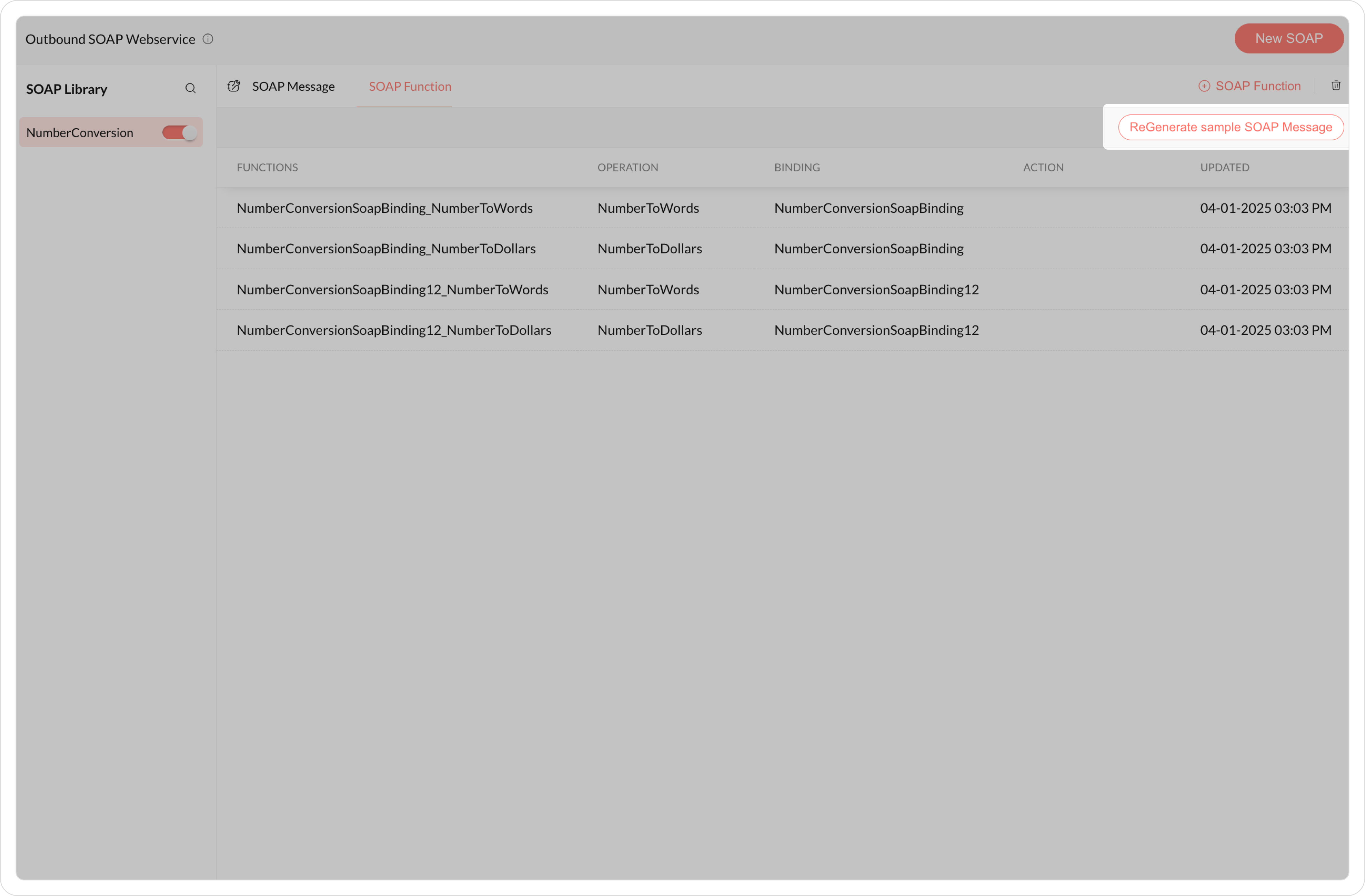 If you make changes to the WSDL contract, click Regenerate Sample SOAP Messages to refresh the function definitions.