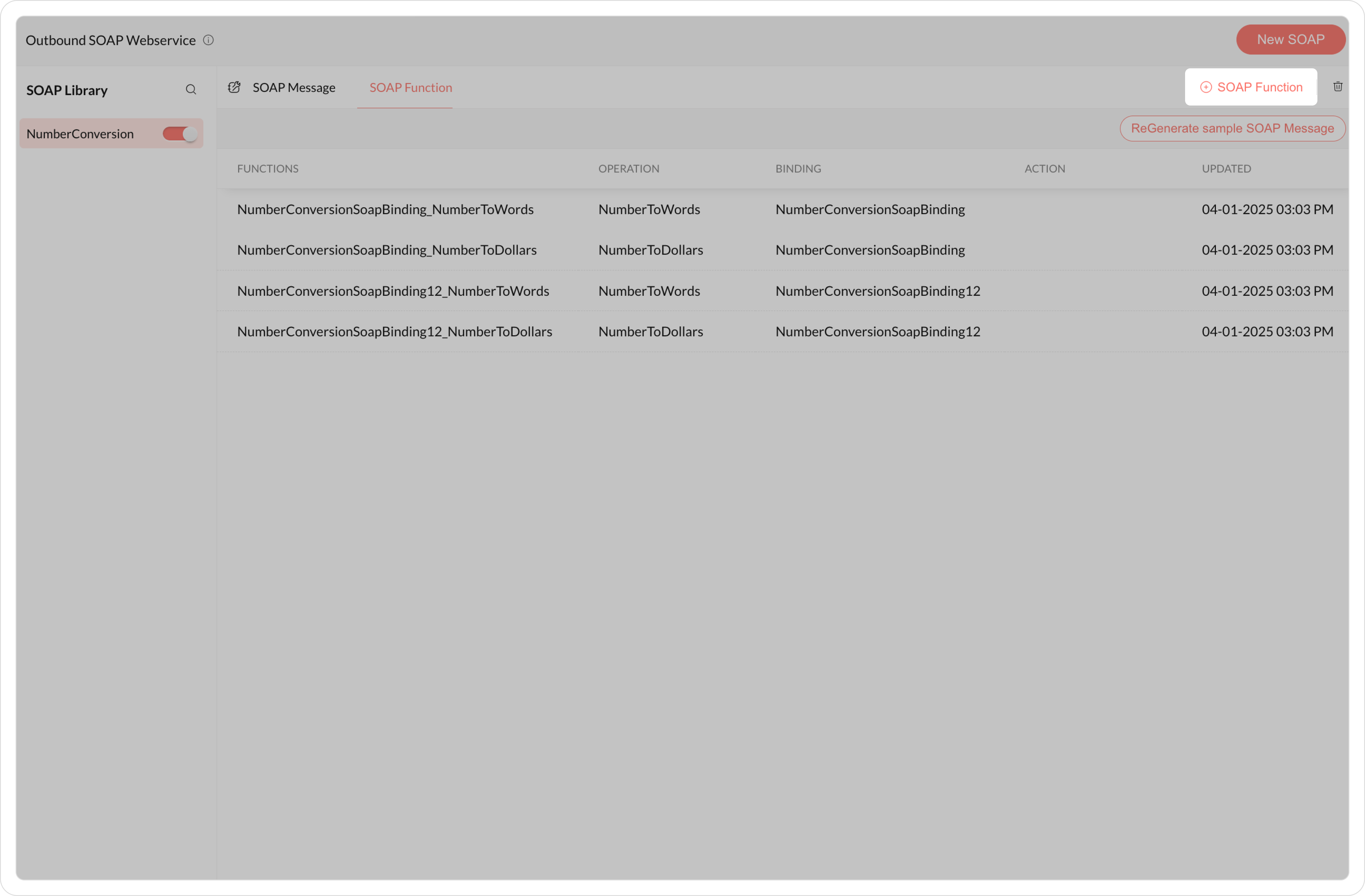If you want to create a new API message manually, click SOAP Function in the top-right corner to configure a SOAP message from scratch.