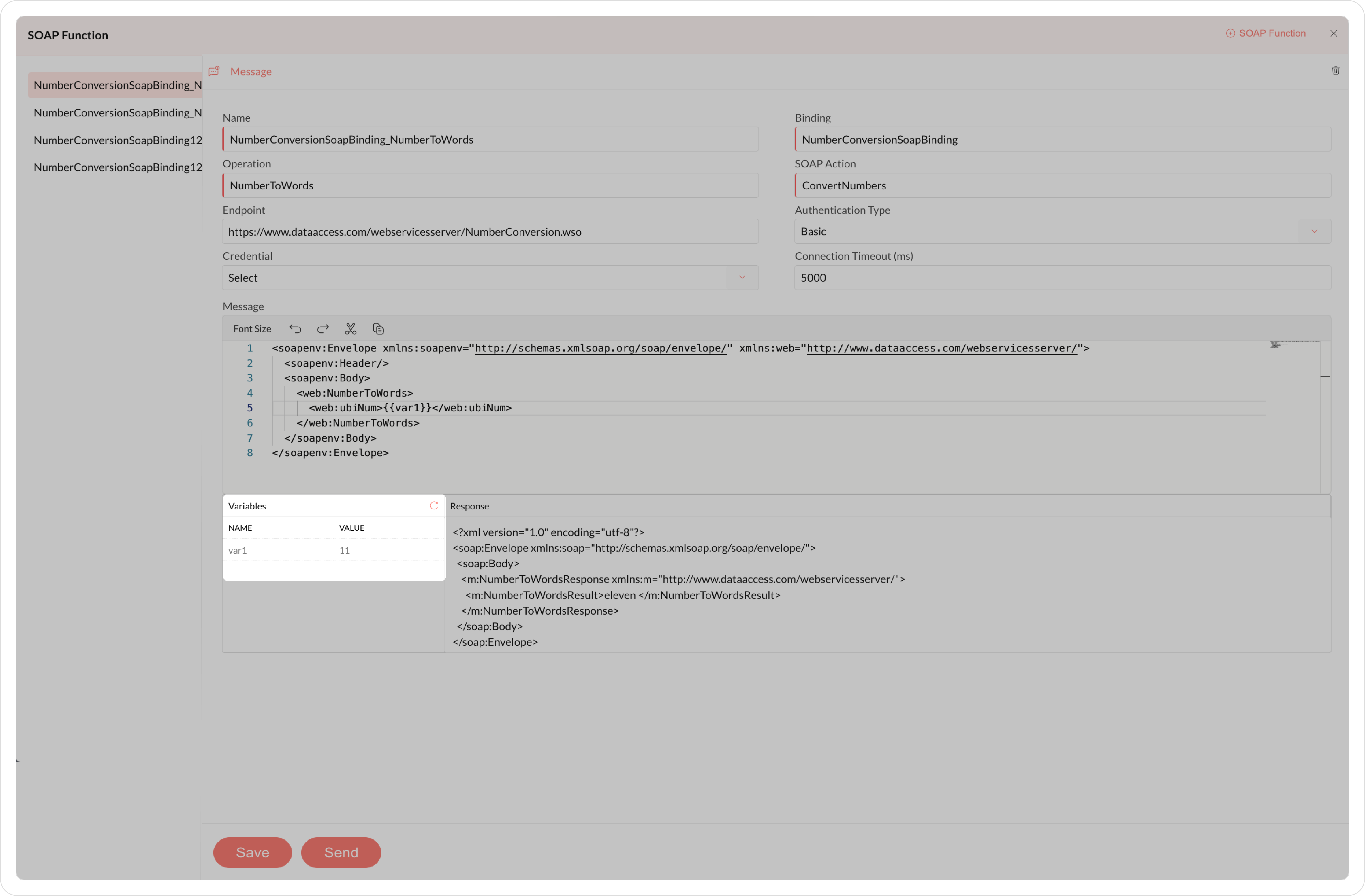 OutboundSOAP.executeByName("wsdl_name", "function_name", "{var1}:{val1}");