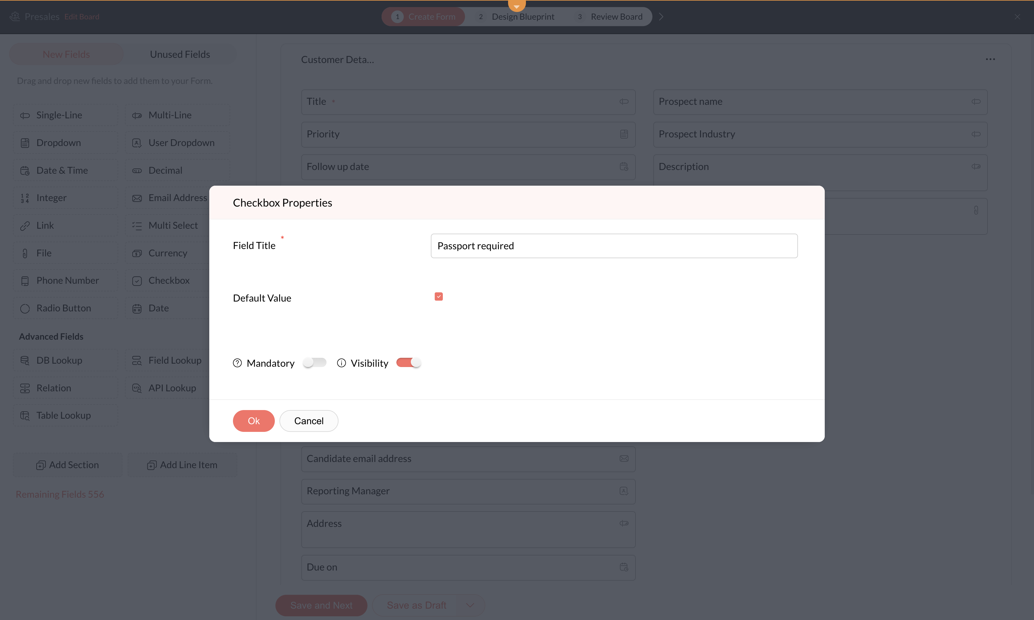 Default Fields in Forms When a new form is created, it will contain a set of default fields. Here's a list of these fields: Field Name and Description Mandatory Visibility Edit Properties Remove Field Title: Card's title Always turned ON Always ...