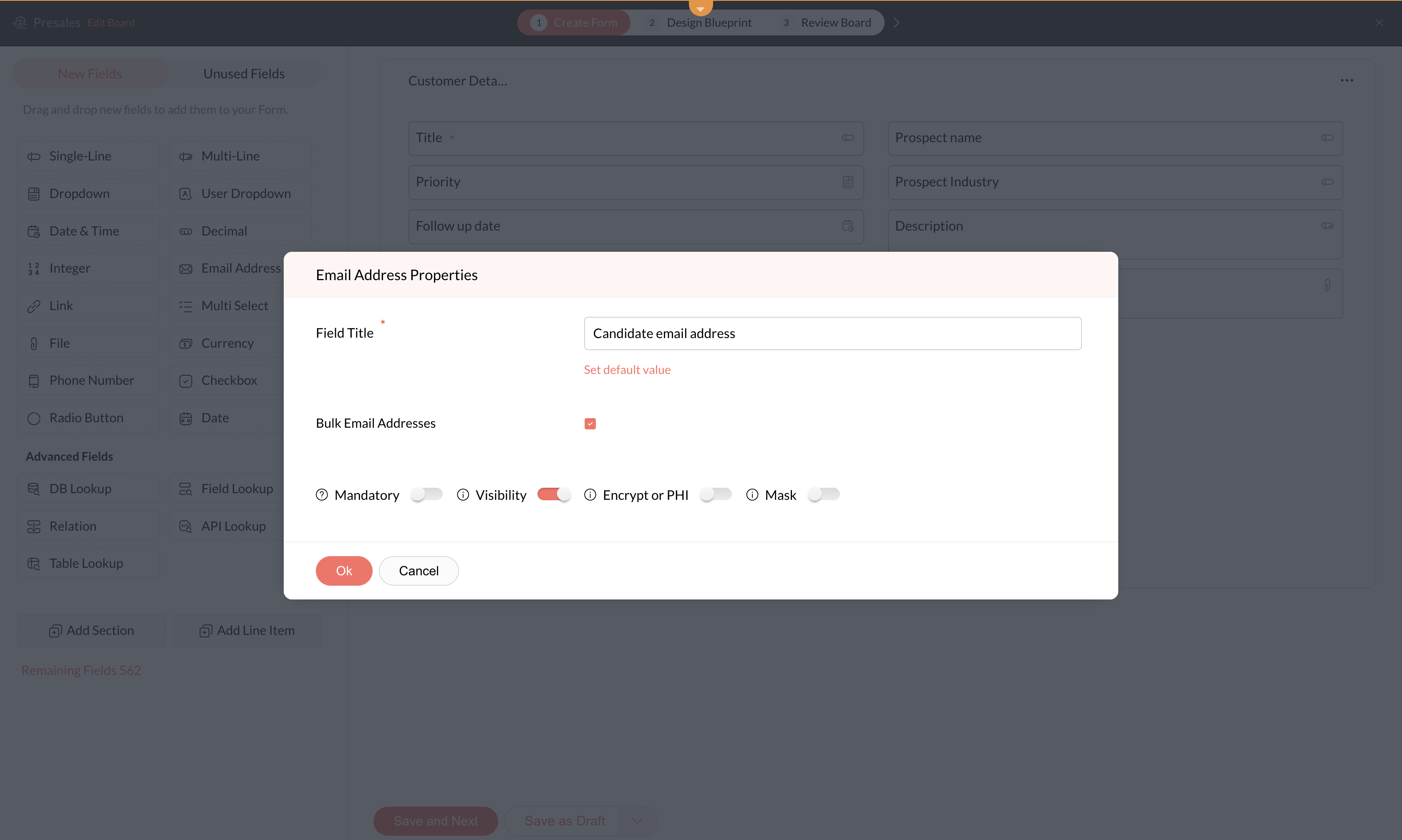 - If you want to allow users to enter more than one email address to this field, check the Bulk Email Addresses radio button.