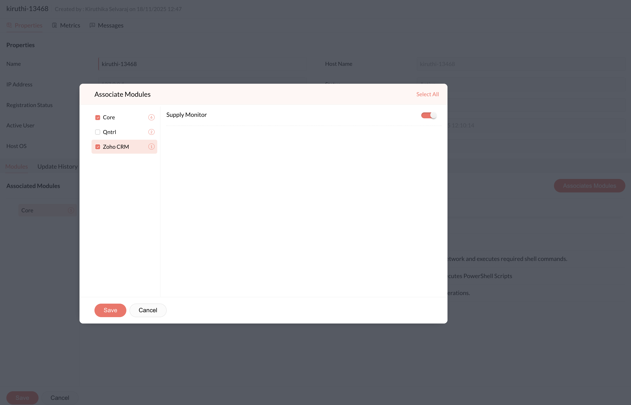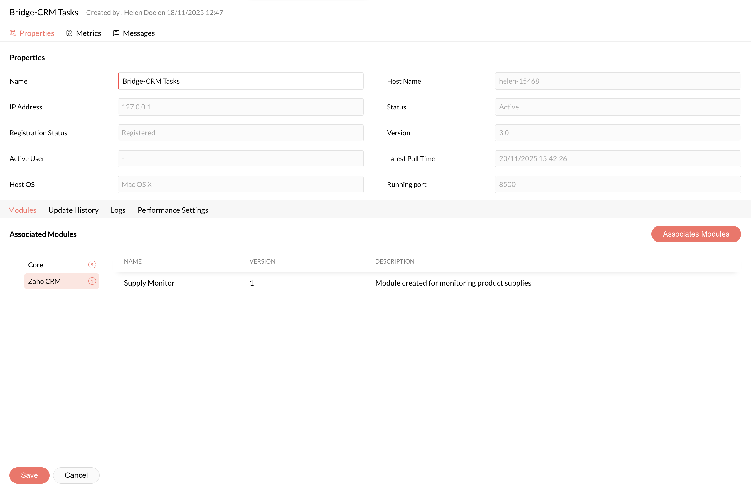 The selected bridge details will be displayed. Under the Modules tab, click Associate Modules, and from the displayed list of modules select the name of the custom module you wish to associate with the bridge.