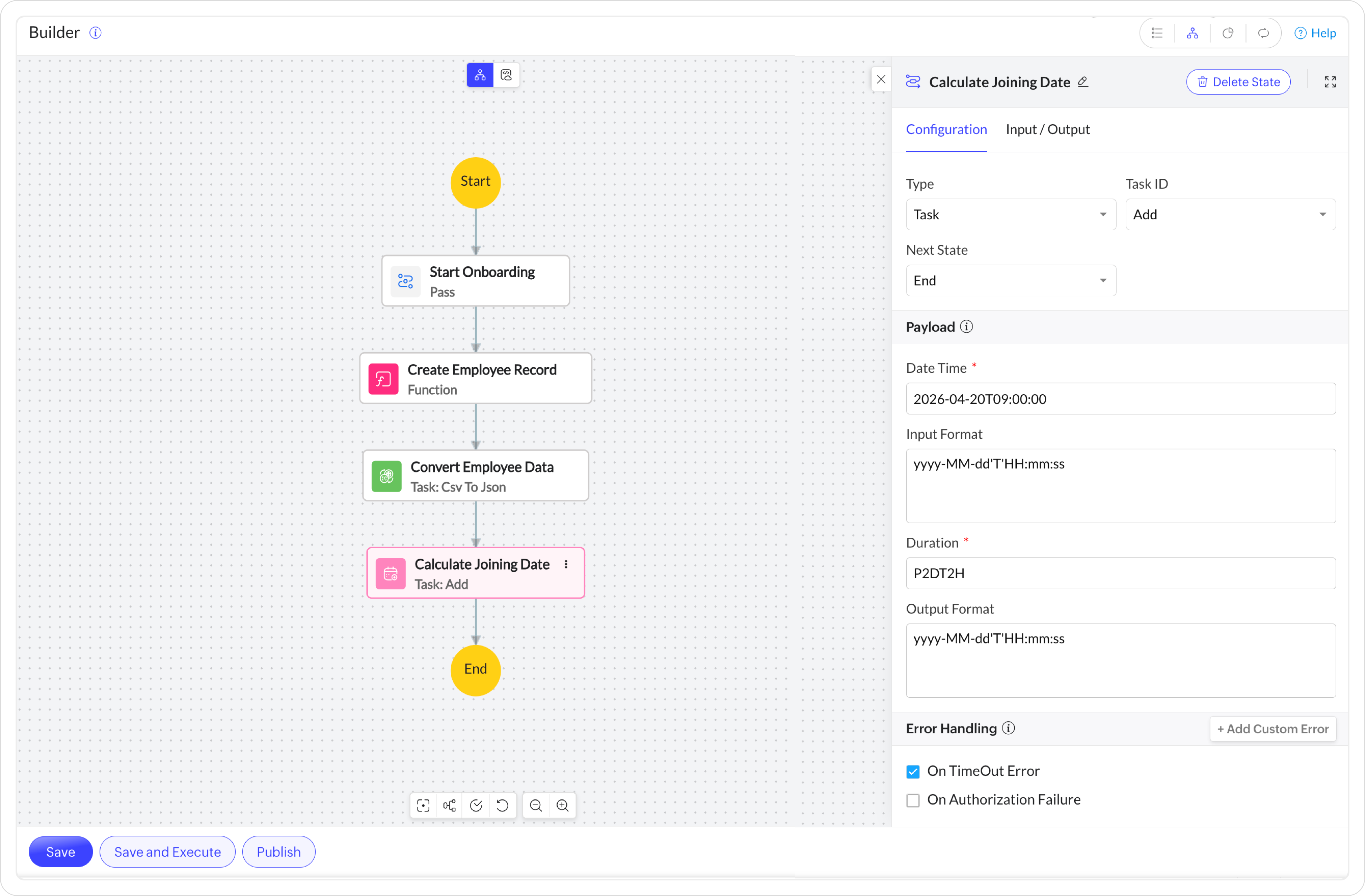 To configure Input Path, Output Path, Result Path, and Result Selector, click Input/Output next to the Configuration tab. For more details, refer to Input & Output Processing.