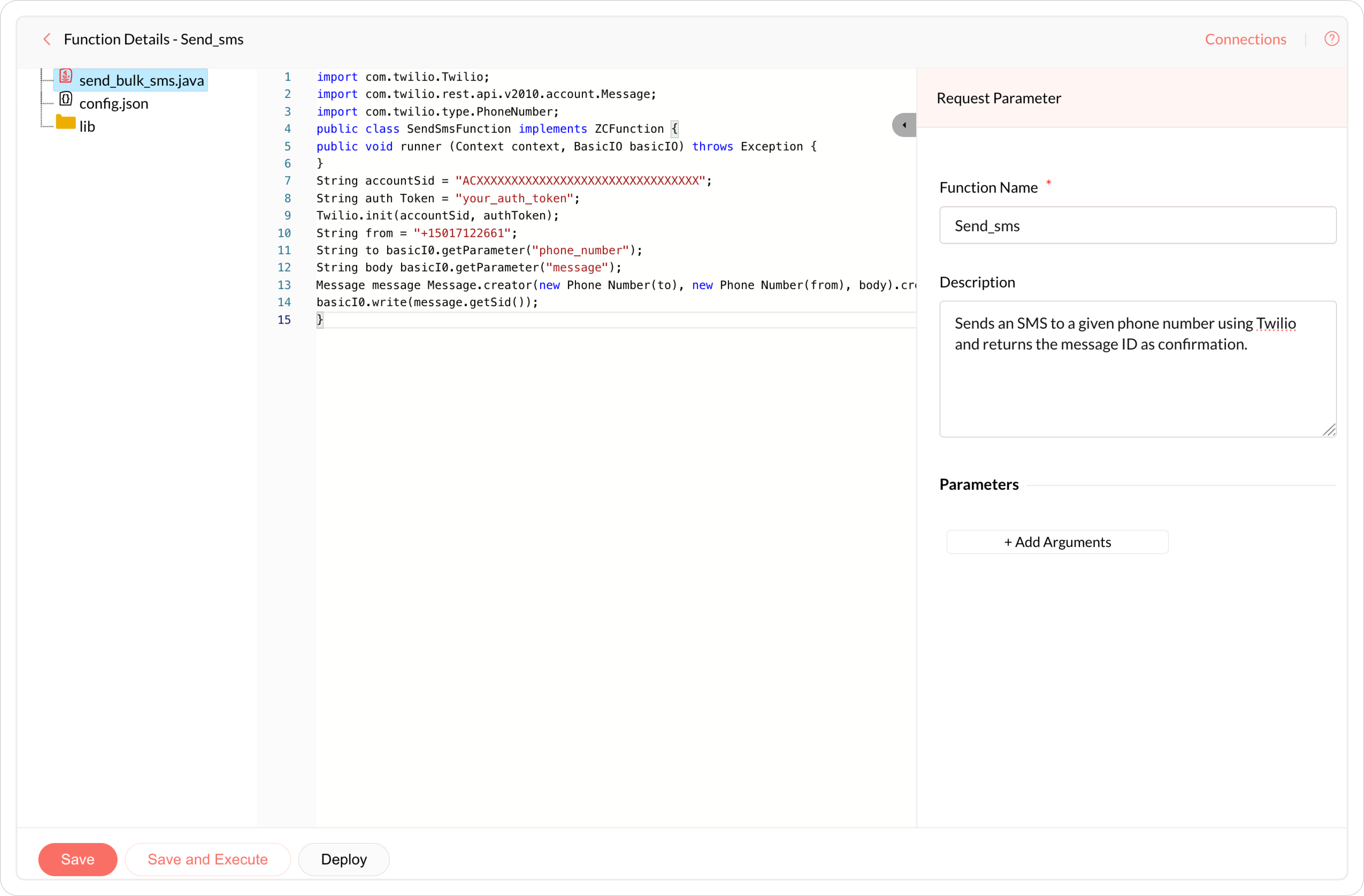 FunctionName.java: Entry point of the function. You may define multiple runner files and configure them in config.json.