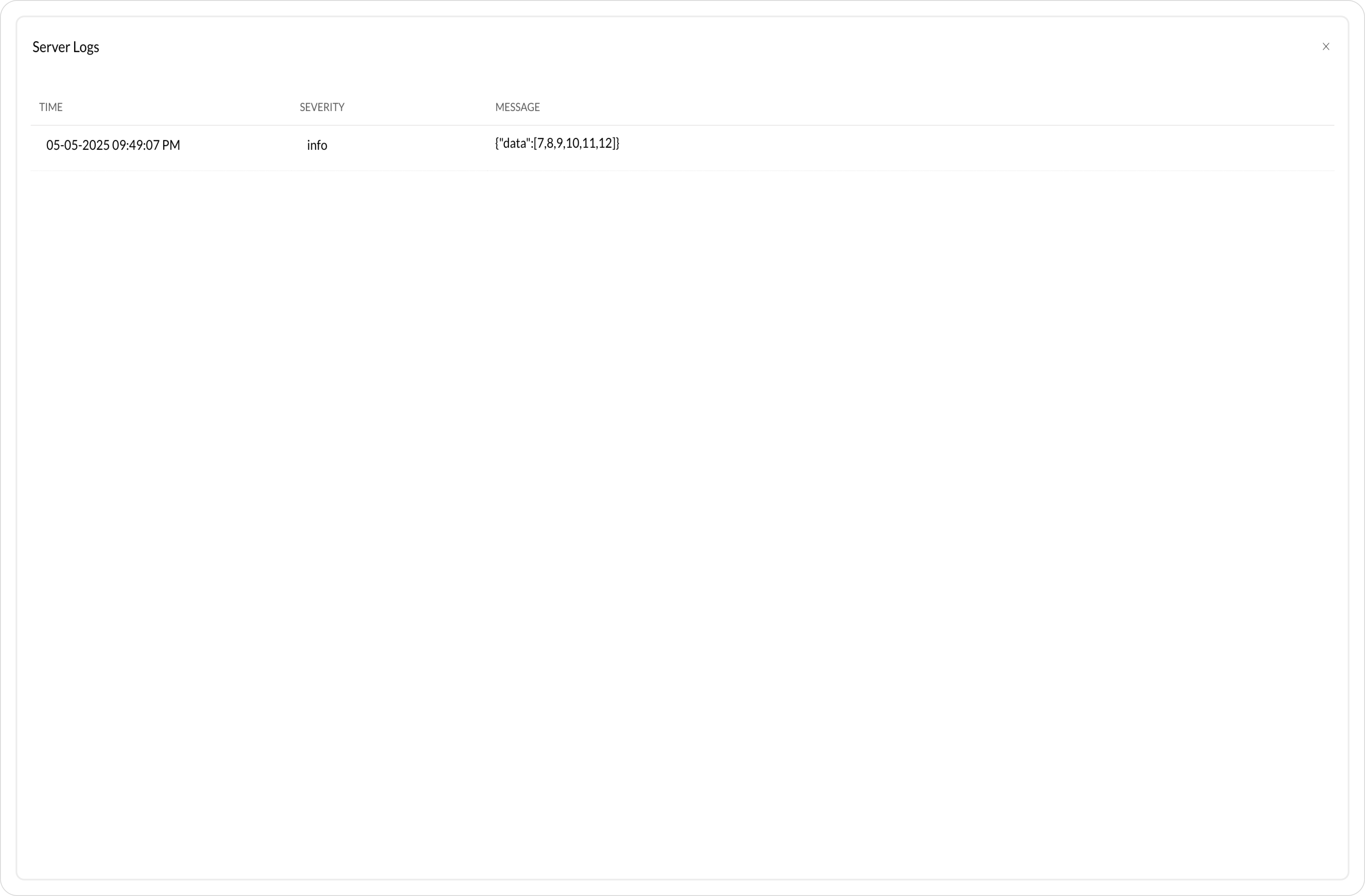 In the codex logs page, you can view the log information of the activities with time, severity, and message.