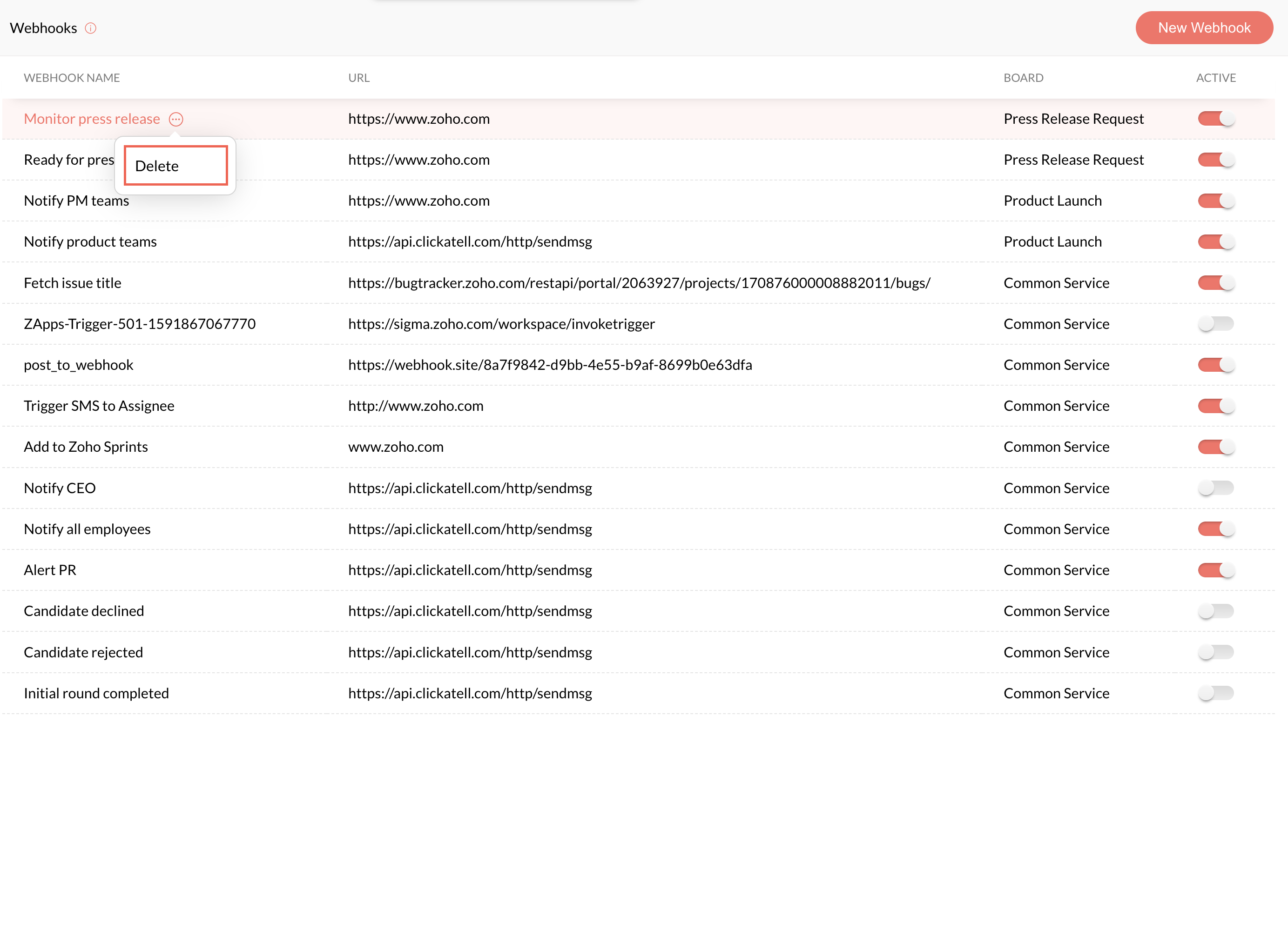 Choose between 'Standalone' and 'Board'. Standalone webhooks can be used in all Boards.
