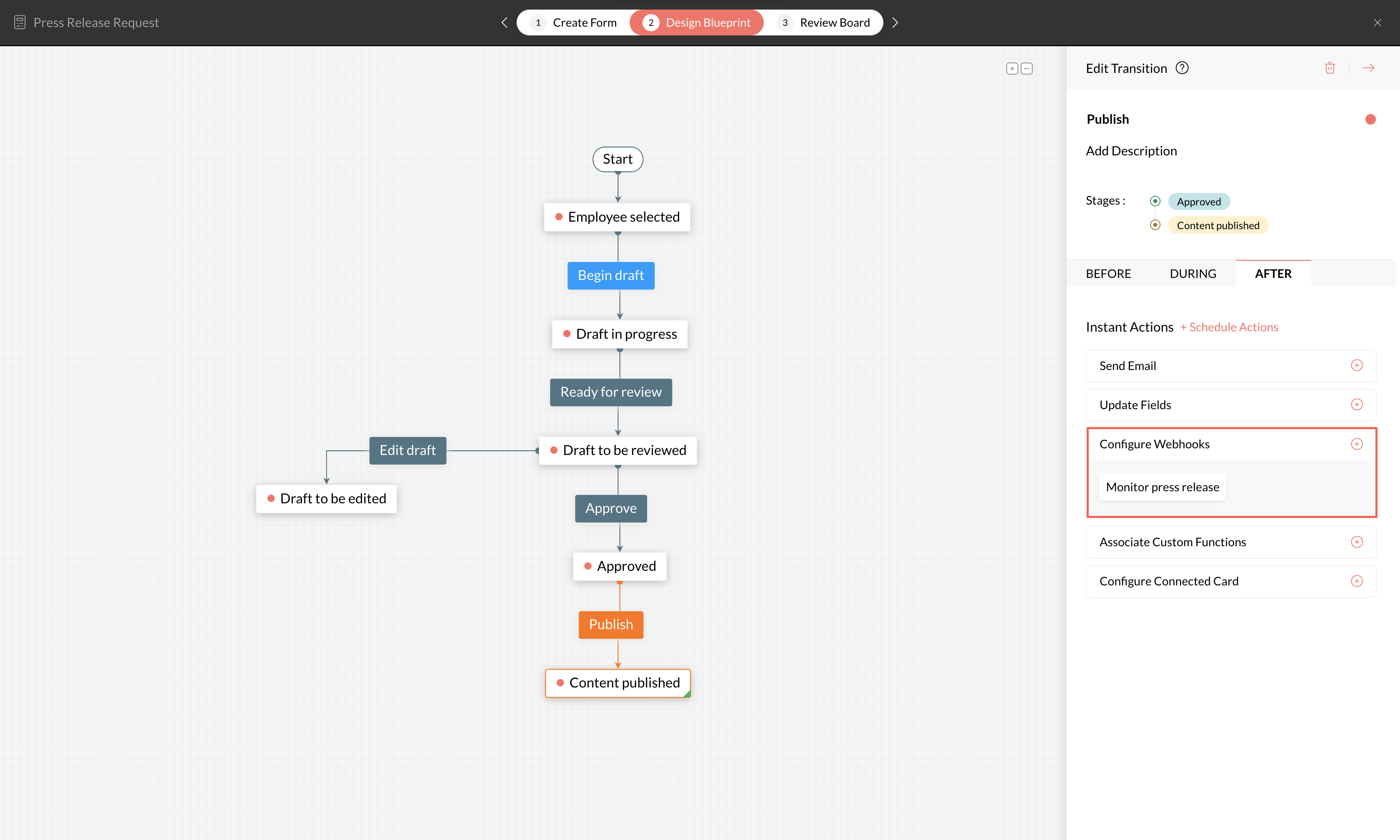 On opting this, webhook details will be sent to Bridge and the corresponding API is triggered. This option is helpful while working with internal APIs.