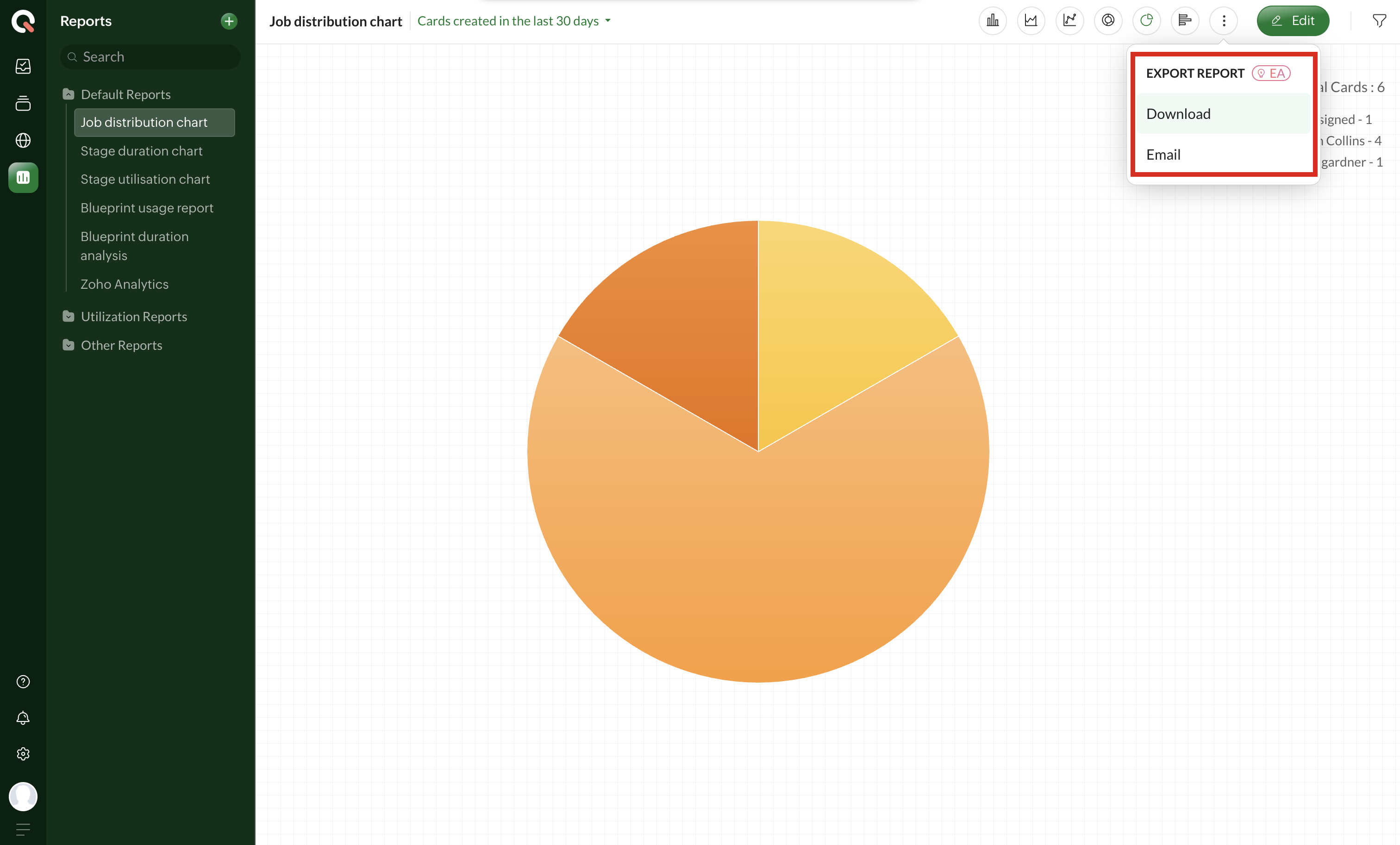 The criteria of the report can be viewed from the card page. You can also add filters to this view and save the applied criteria and filters as a new custom view .