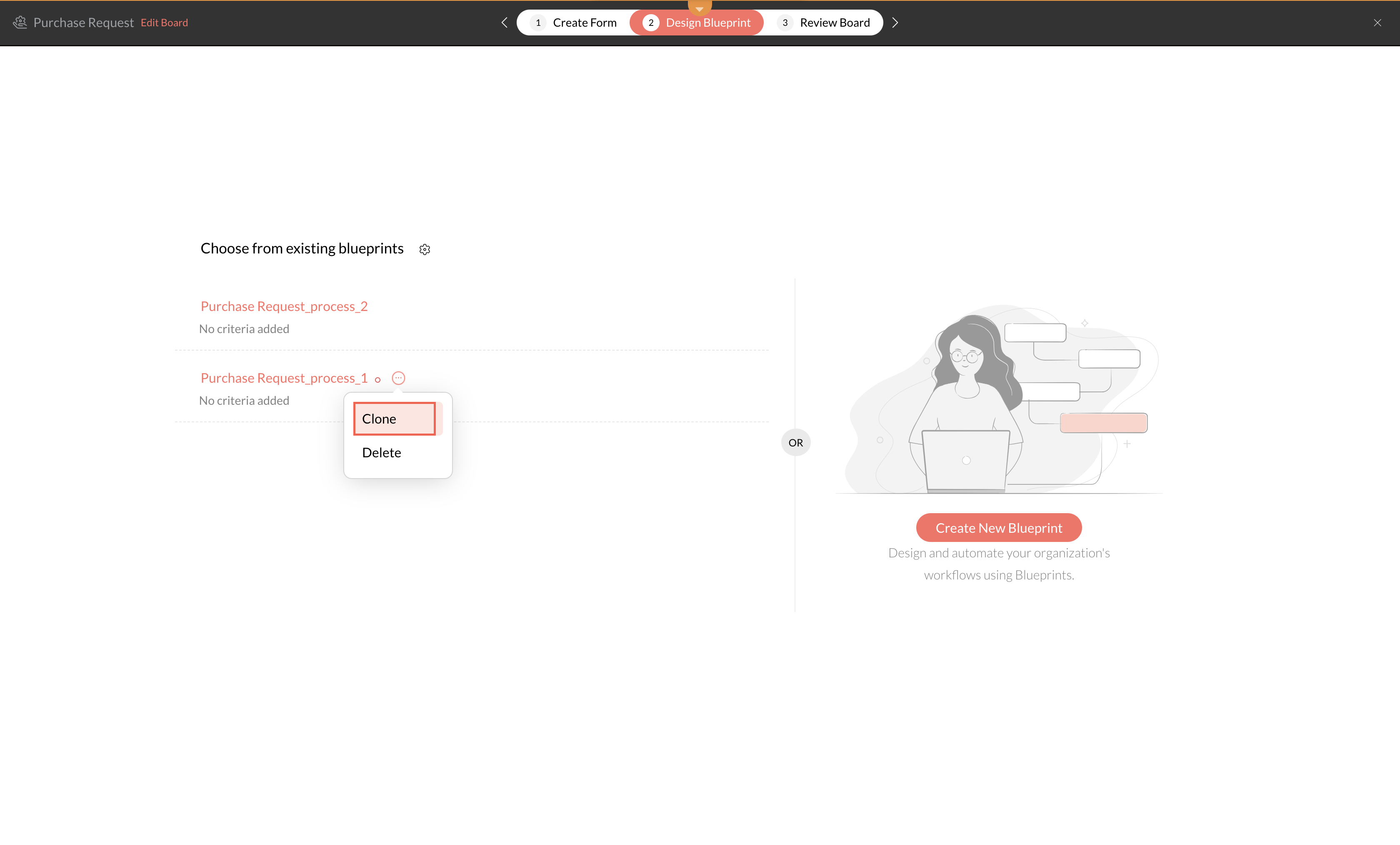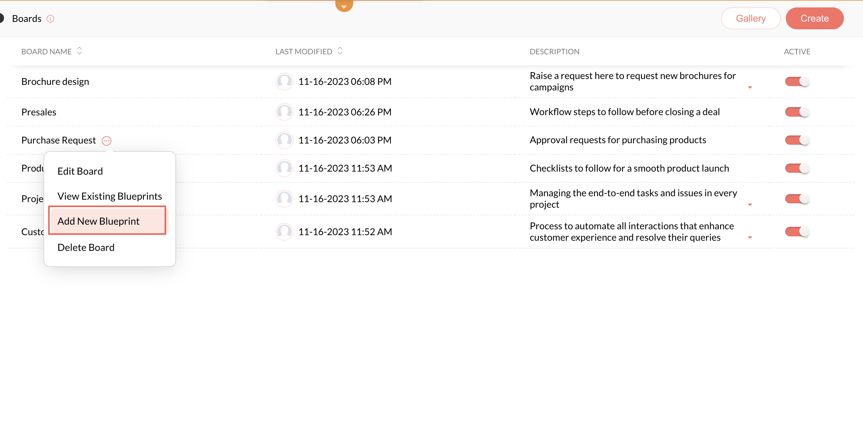 For such cases, Qntrl supports multiple blueprints. You can add more blueprints to the board after it is published or saved as a draft.