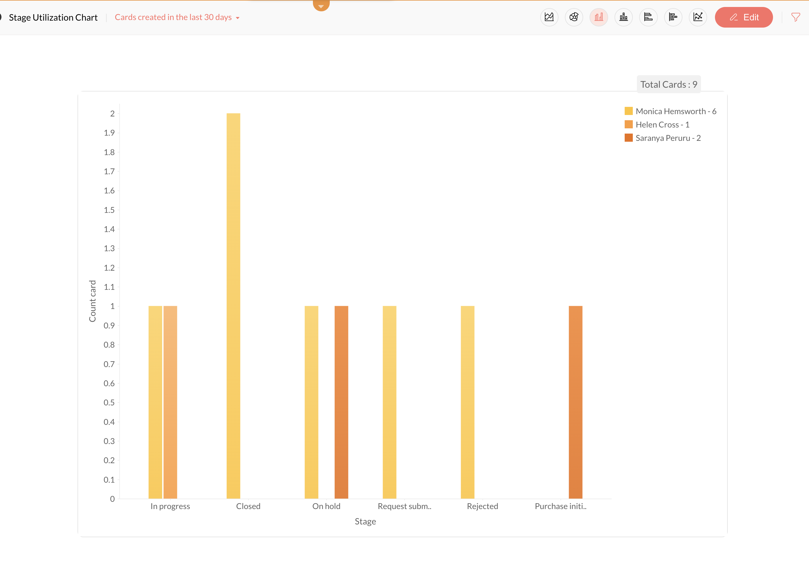 cards performed by individual users in your organization under a given period. We can track the workload of every user using this chart.