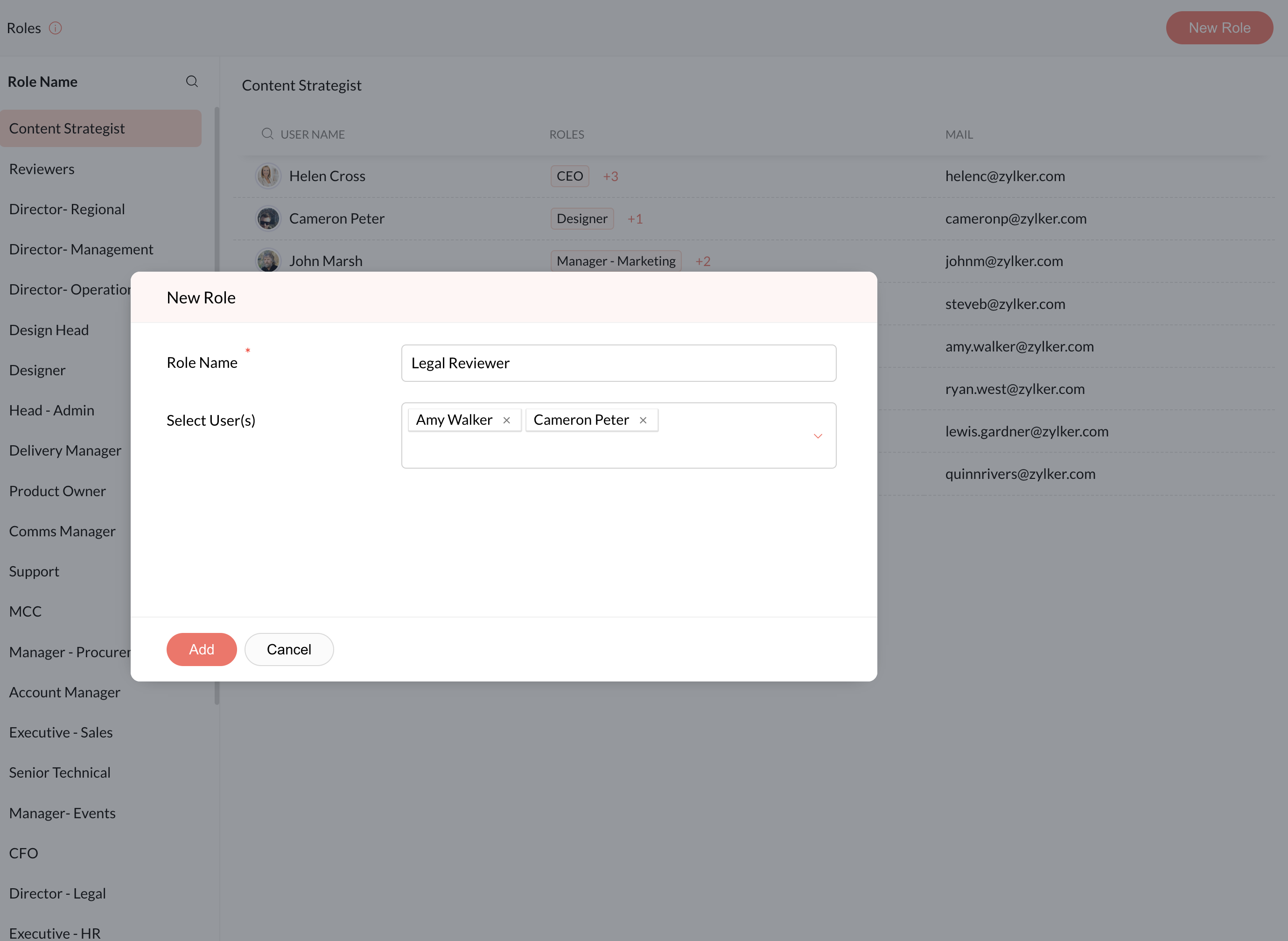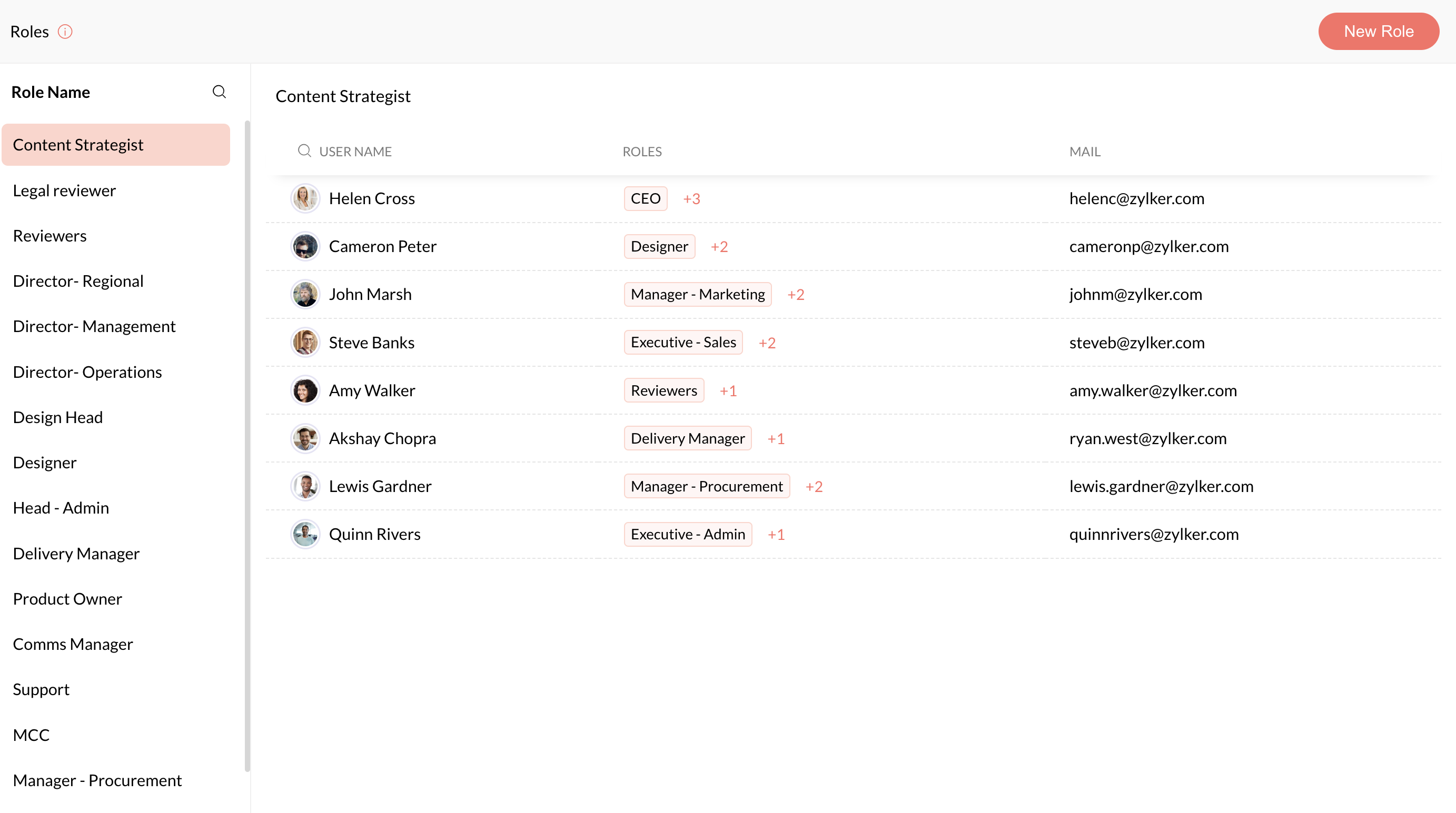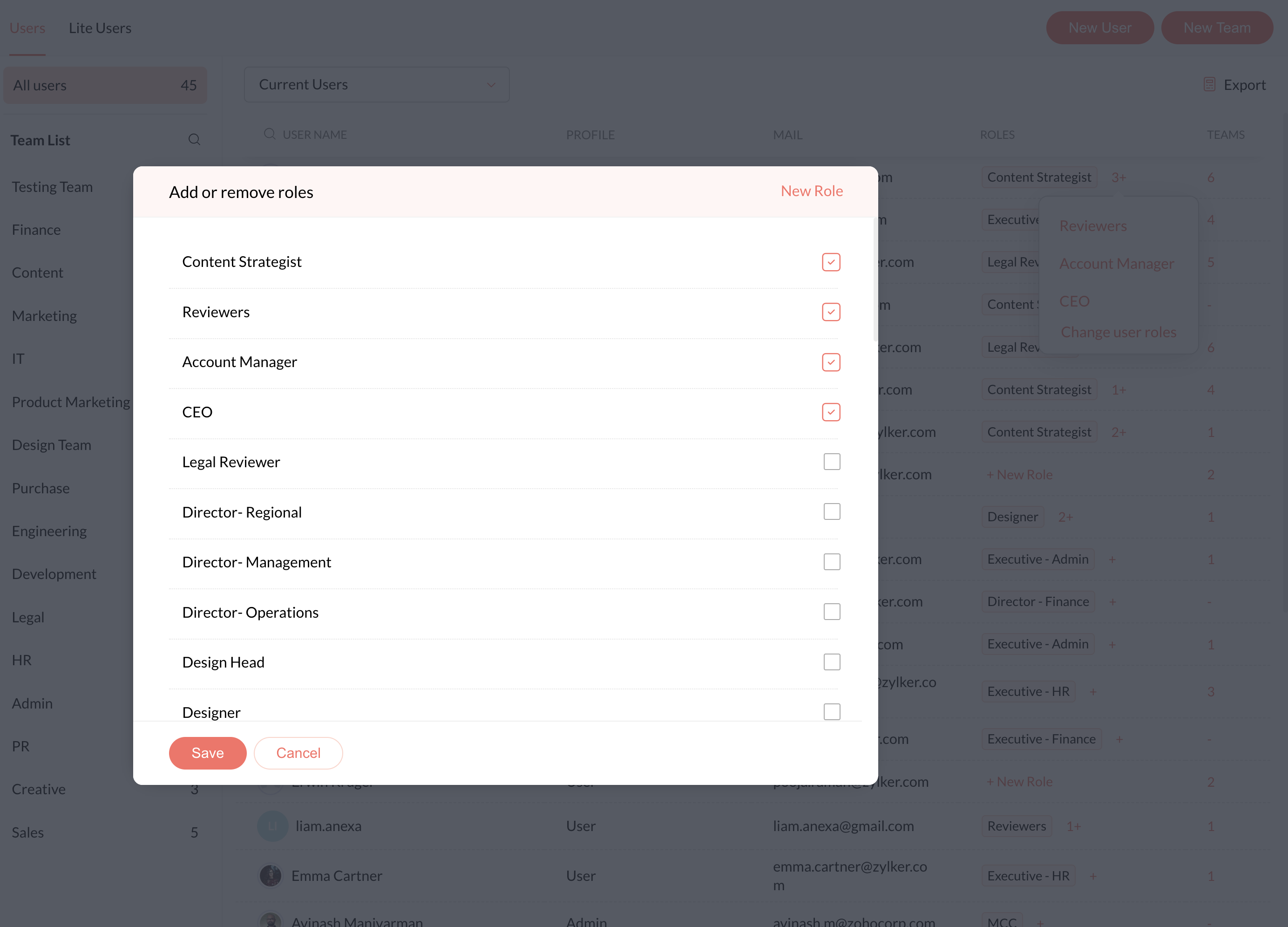 If you want to add a new role, click New Role at the top-right corner of the pop-up.