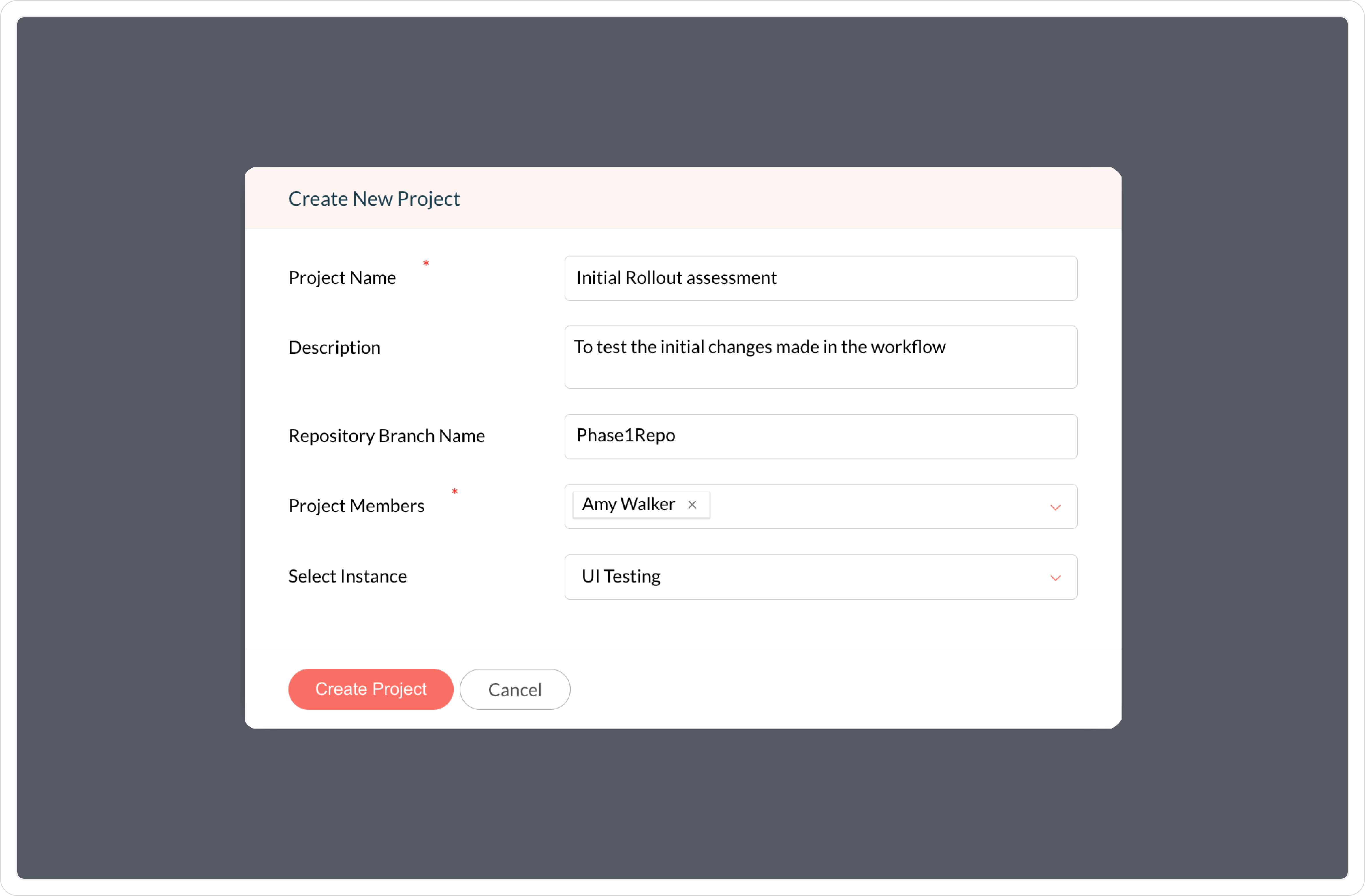 The project will be created, associated with the selected instance (if applicable), and listed under the Projects list page.
