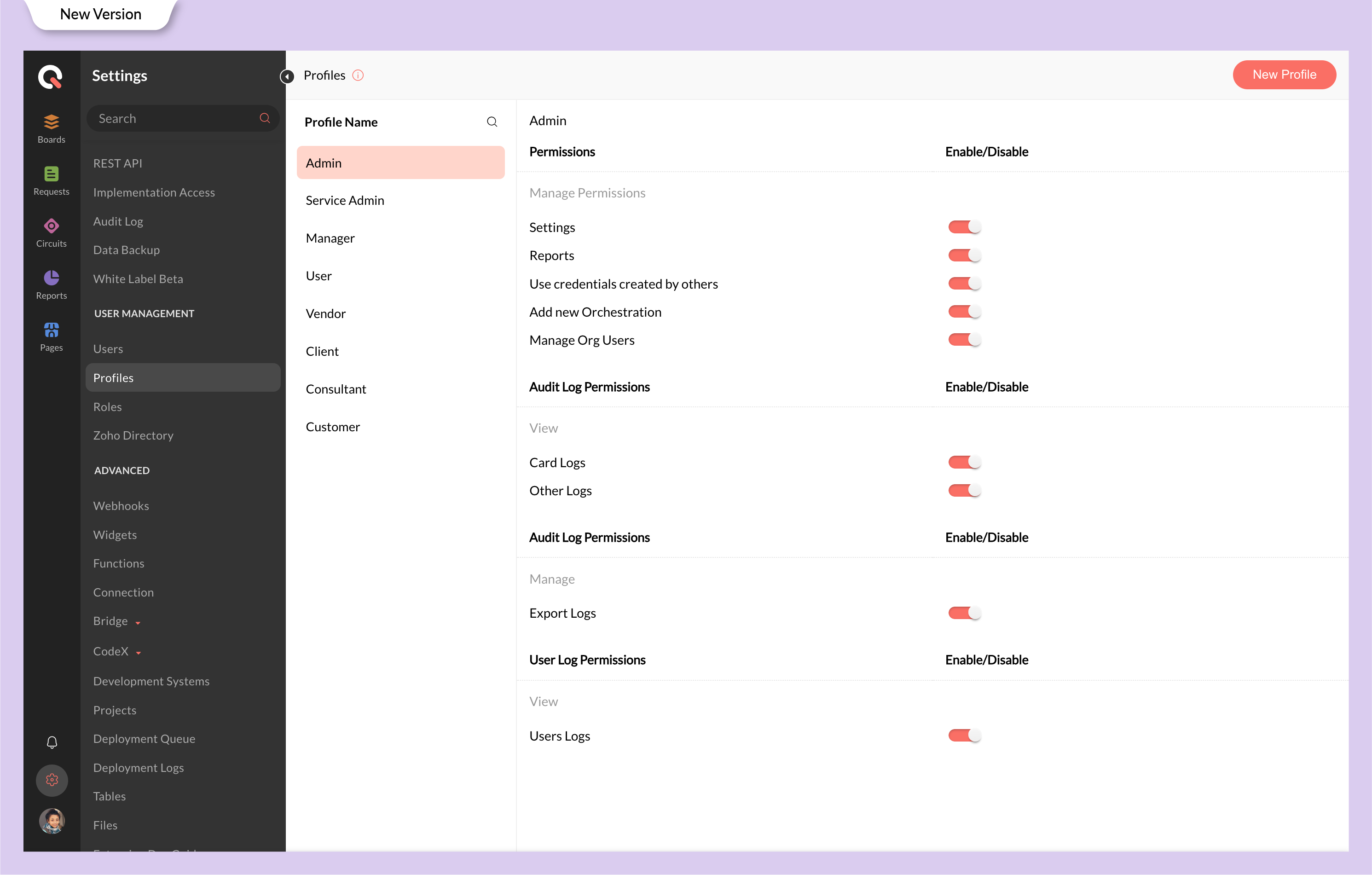 With Card-level and Field-level permissions now moved to Board-level ones, we've added two new permissions under Profiles in Settings.