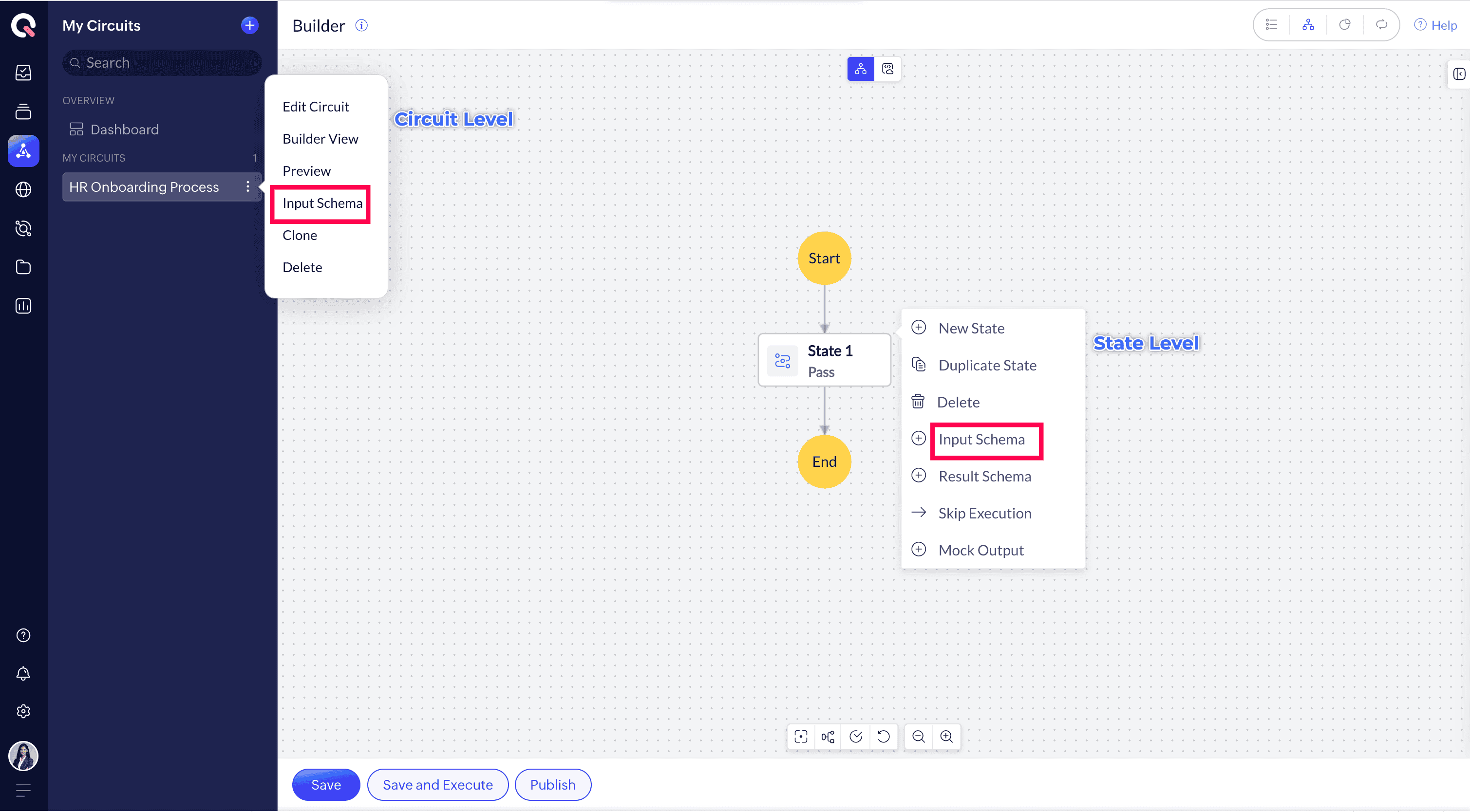 Circuit Input Schema : Validates incoming JSON before execution starts. If validation fails, the circuit does not start.