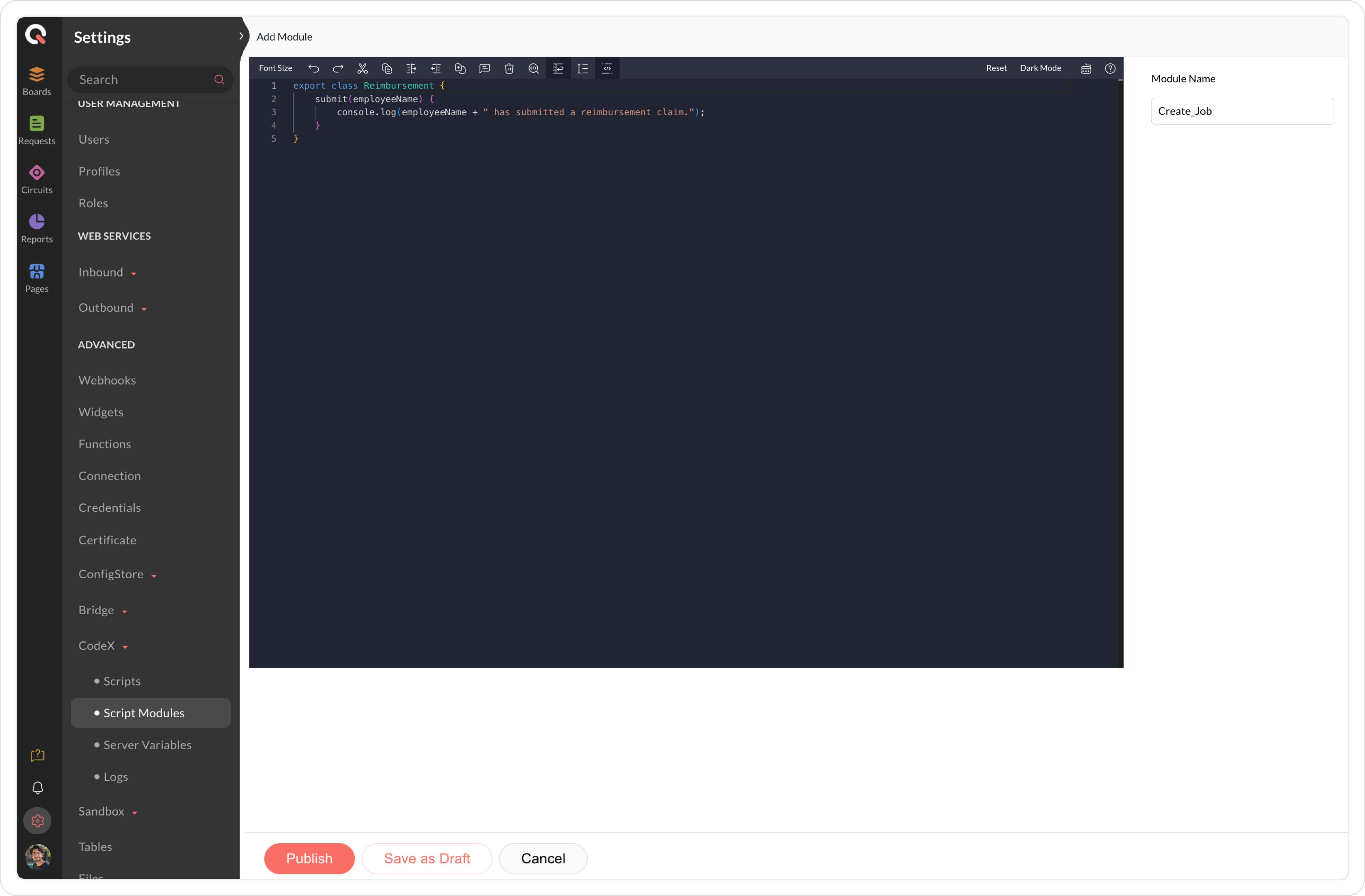 A new script module will be added to Qntrl. You also have the option to save it as a draft and publish it later by clicking Save as Draft.