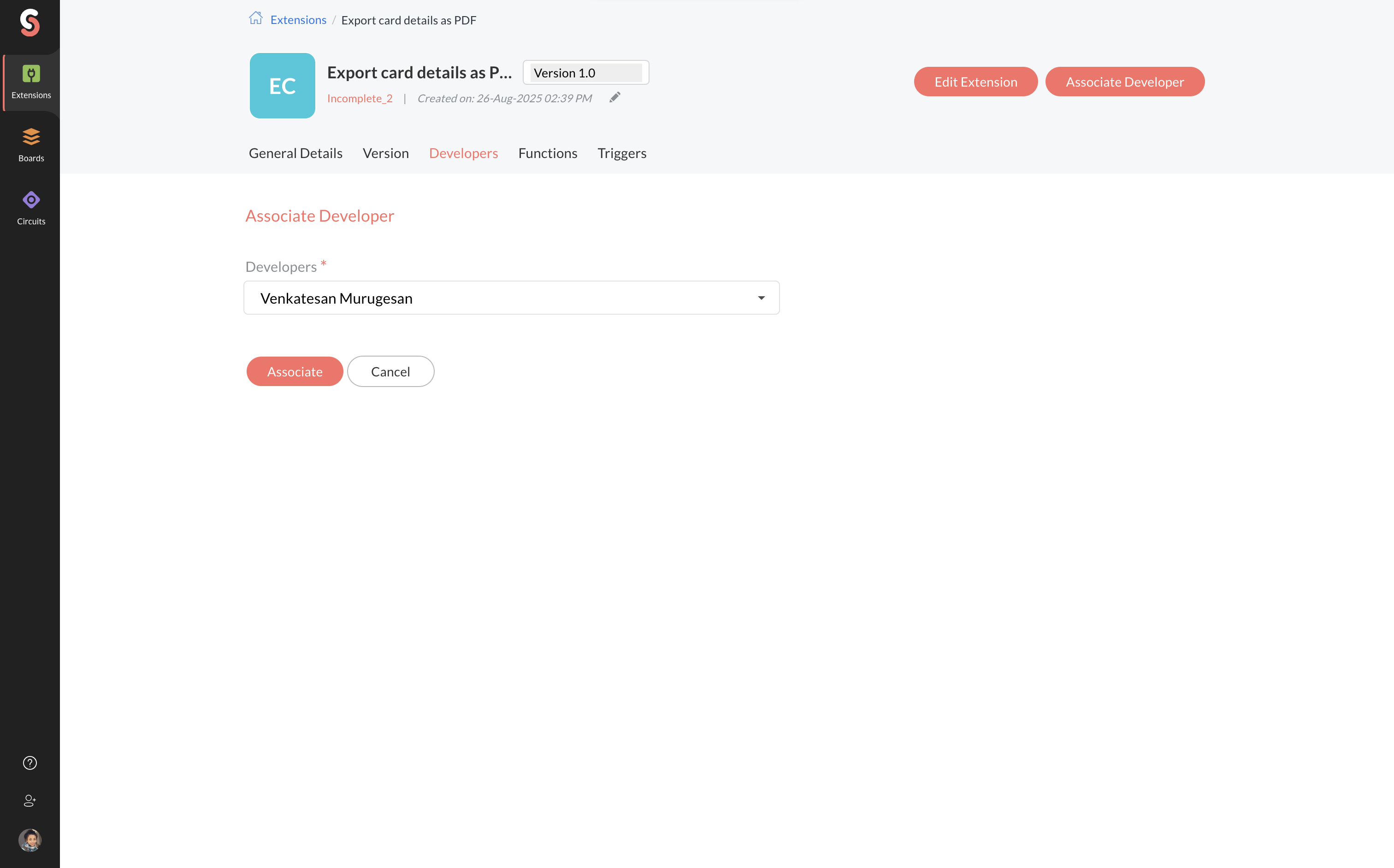 You can also view the list of existing associated developers for this extension.