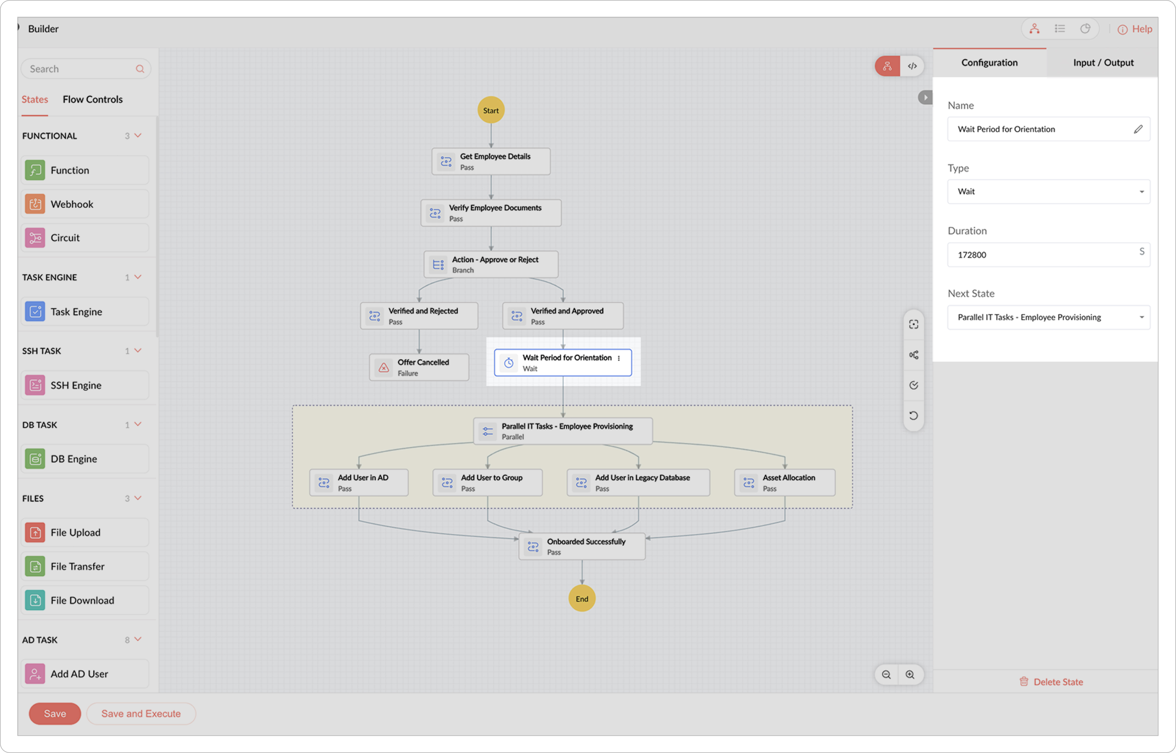 Drag and drop the Wait state from the left pane into your circuit, or click the required state in your circuit.