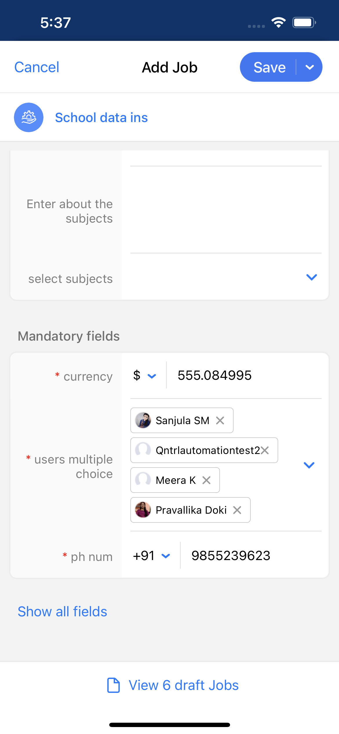 Custom fields like Phone number, Multi-user and Currency are now supported in the app in all forms.