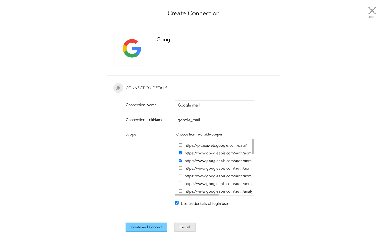 Os usuários podem se conectar a um serviço disponível ou criar sua própria conexão com um serviço personalizado.